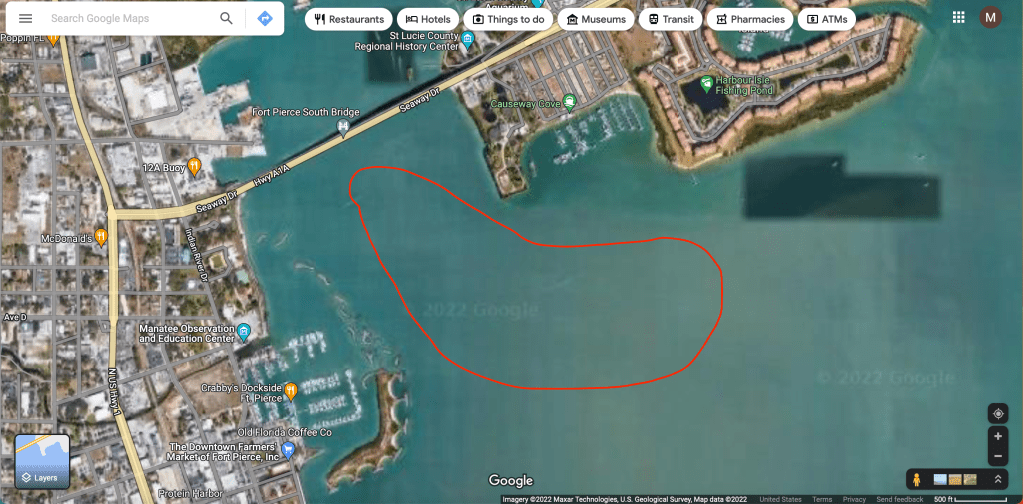 With the winds and high seas, we decided to stay in the river and try our luck. I am planning on starting over by the Fort Pierce Yacht yard. Last week we caught a bunch of fish there, so I thought it would be a good place to start.