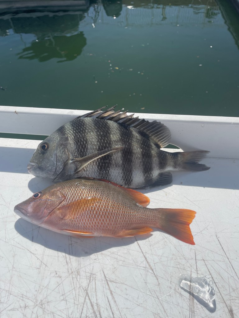 The blue runners were fun to catch but they were not a targeted species, so we moved to another spot. We fished the concrete pillars at the waste treatment plant. Once again hoping for some snapper or even sheepshead. We both caught a few short Mutton Snapper, but that was it. We ended up running out of bait about 11:30am so we headed back to the dock.