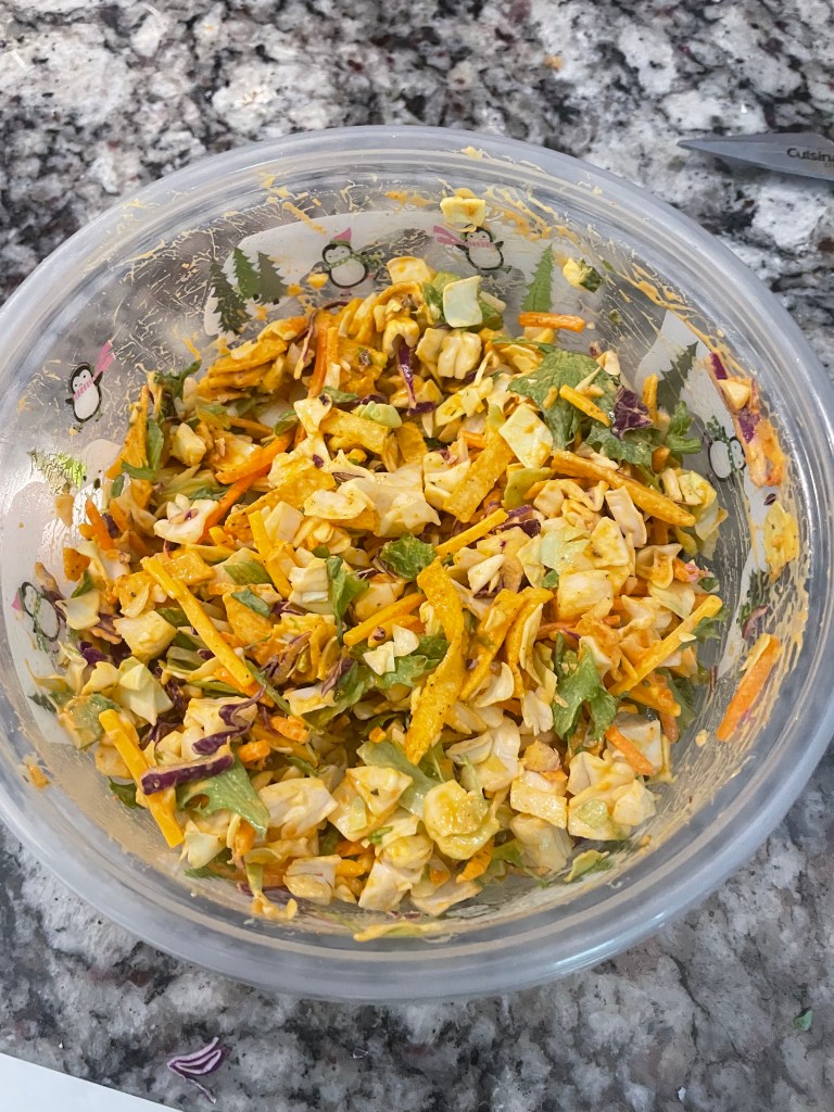 I decided to make fish tacos for lunch today. I used the sheepshead and snapper I brought home on the other day. The first step to making good fish tacos is to get the coleslaw ready. I bought shredded cabage at the local Publix and mixed in chipotle ranch, shredded cheddar cheese, and corn tortilla strips. Once it’s all mixed together let it sit in the fridge for a minimum of 2 hours to let the flavors be absorbed by the coleslaw. The longer you let it sit the better the flavor is.