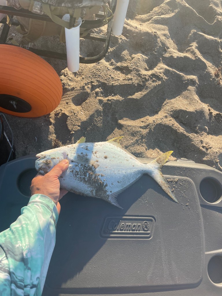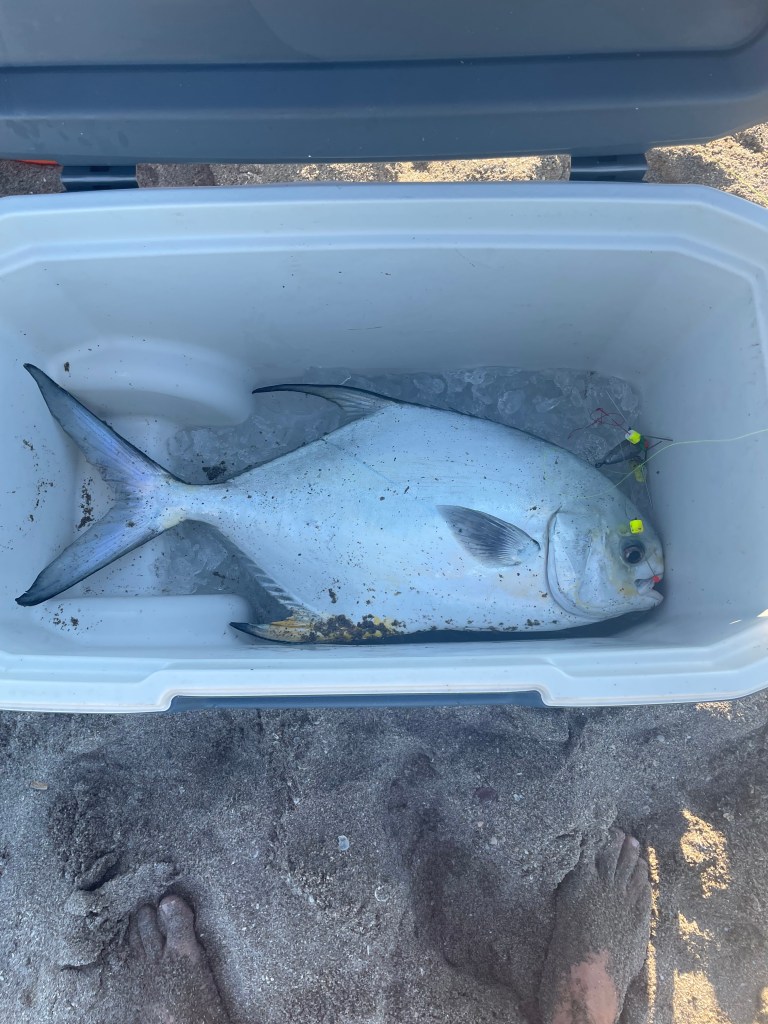 Yesterday evening Tania had a girl’s night out with some friends. I took this time to try and catch more pompano. I arrived at Blue Heron beach about 4pm. I was the only car in the parking lot so I figured the bite must be non-existent; however, I was there so I loaded up my cart and headed to the water.
