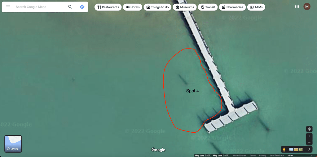 Our third spot was drifting south of the South Causeway bridge. We did 3 drifts and we only caught catfish, so we moved over to the Smithsonian dock. With the cooler water we were hopeful to catch some sheepshead or even a few snappers. We fished the dock for about 15 minutes without a single bite, so we decided to move on to another spot.