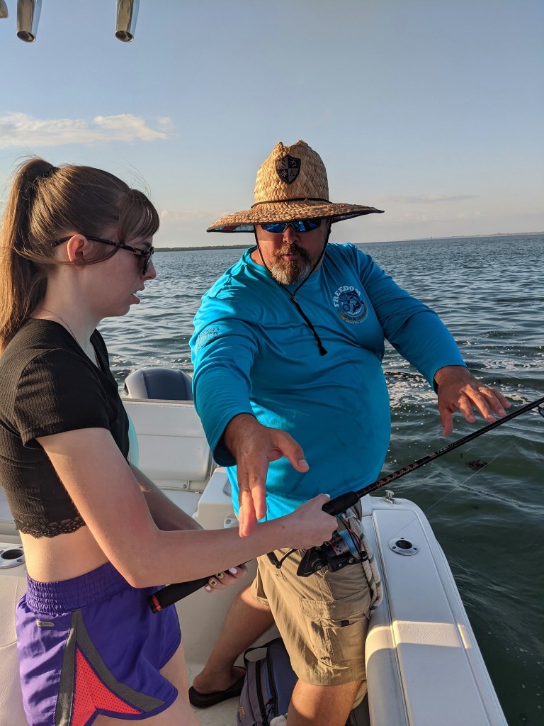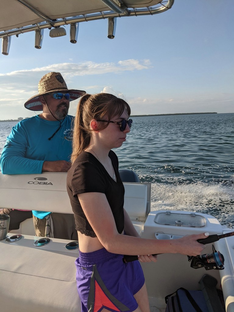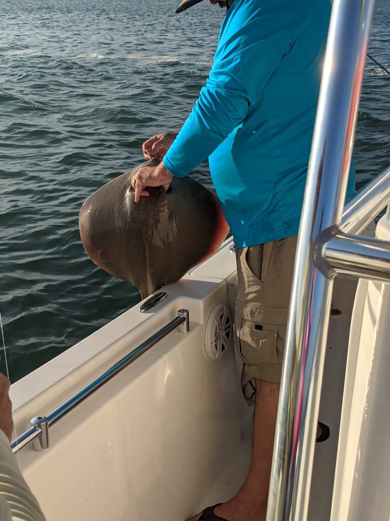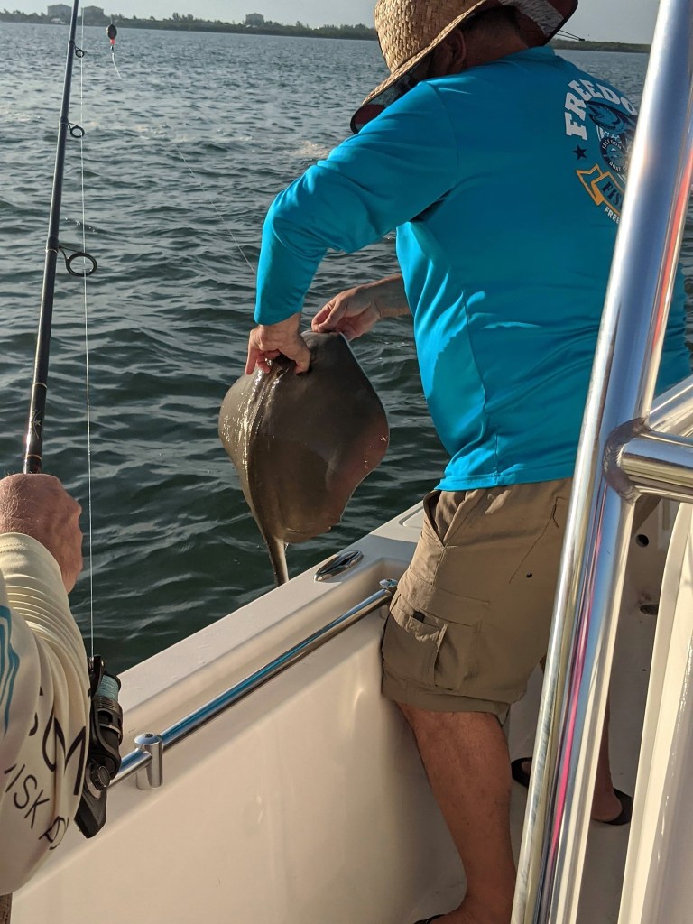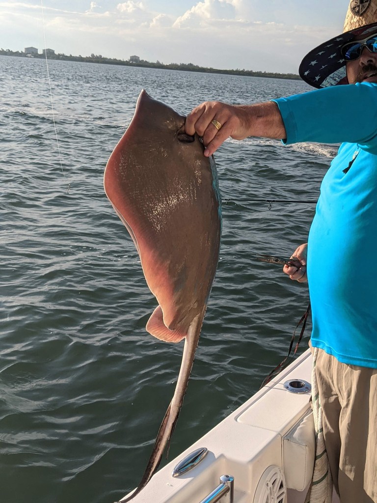 Since our family has never fished in Florida before, I was feeling the pressure of putting them on some fish. I decided to go to one of our go-to spots; however, it has been months since we have fished here. My cousin’s husband Paul caught two stingrays, but nothing else was biting. I repositioned a few times in the area looking for fish, but I was unable to find them. After an hour fishing the area with very few bites I decided to move.