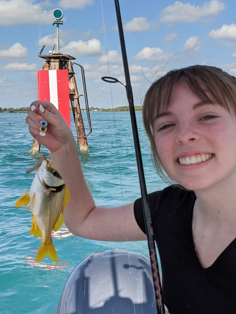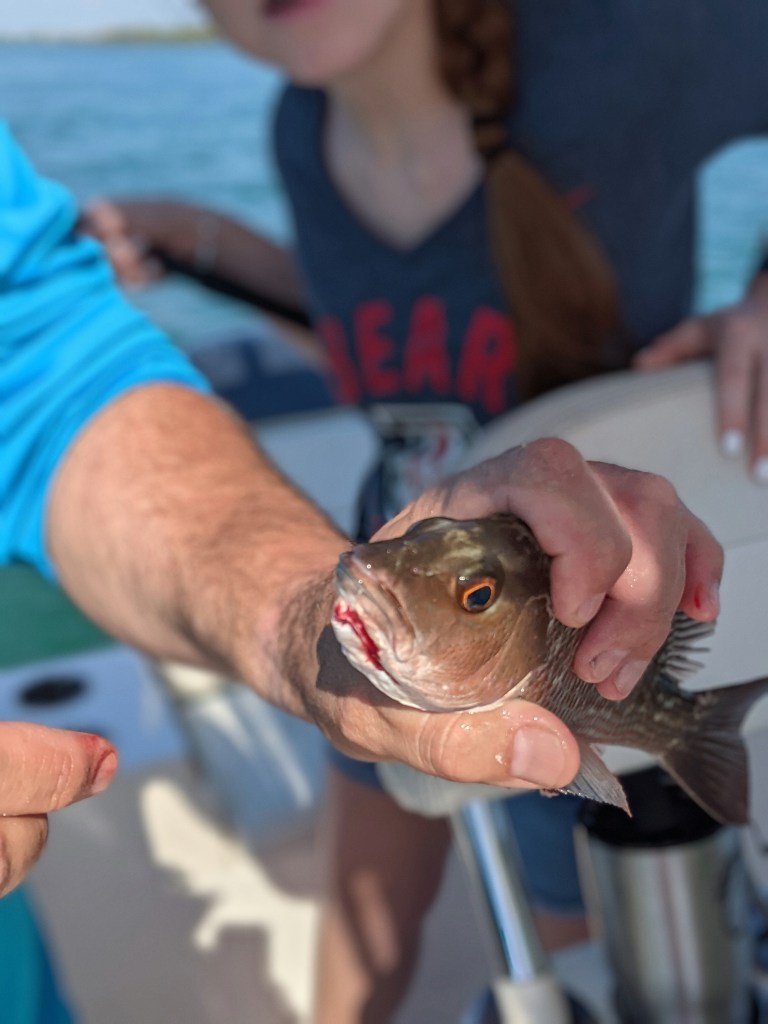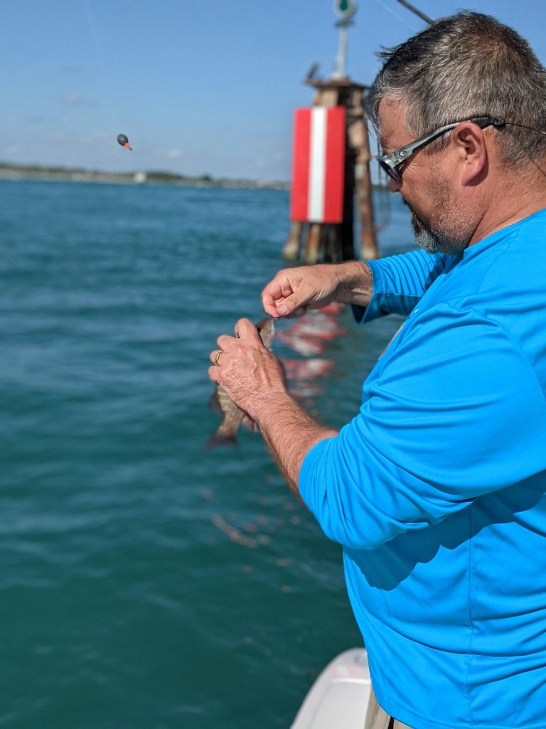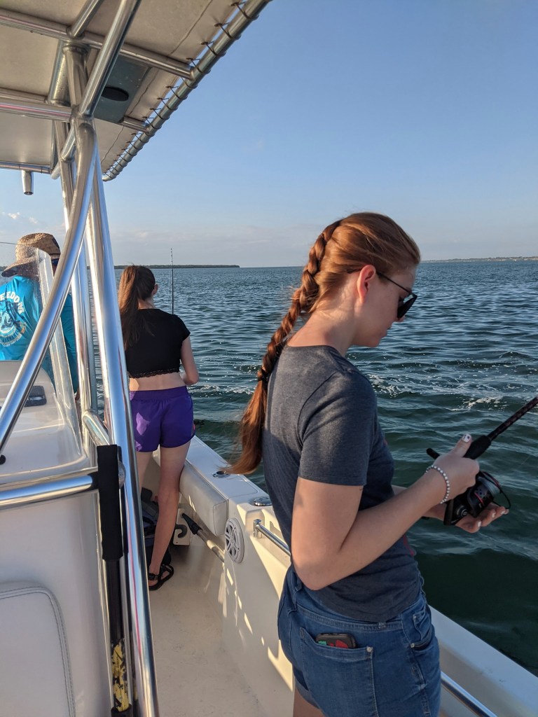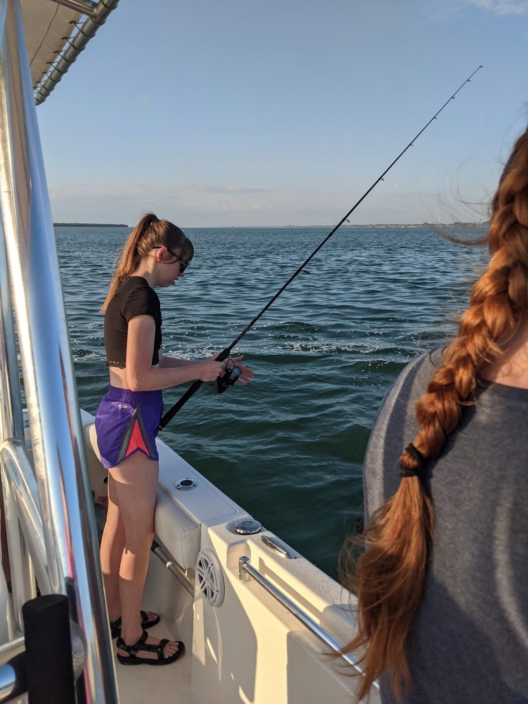 As always, Tania was right. We anchored up on one of our favorite channel markers and within a short time the fish started cooperating. Other than my cousin Marlena, who wasn’t fishing, we all caught some fish. It wasn’t the best day fishing, but I was relieved to have Abby and Maddie, my cousin’s daughters, catch a few fish.