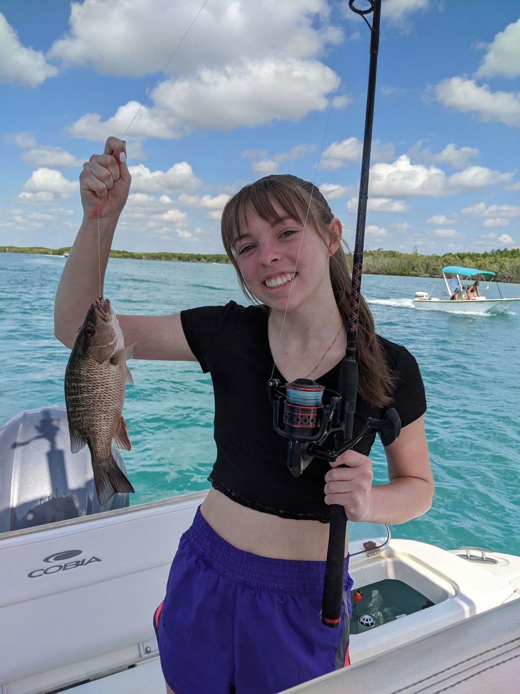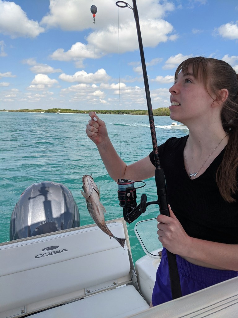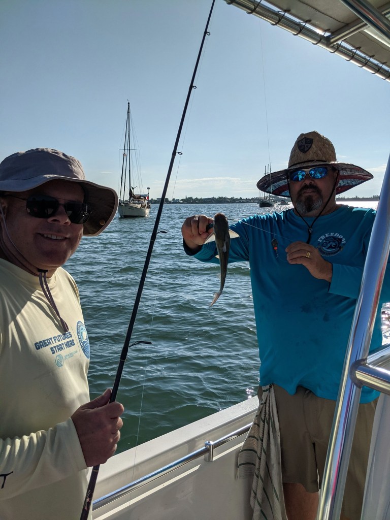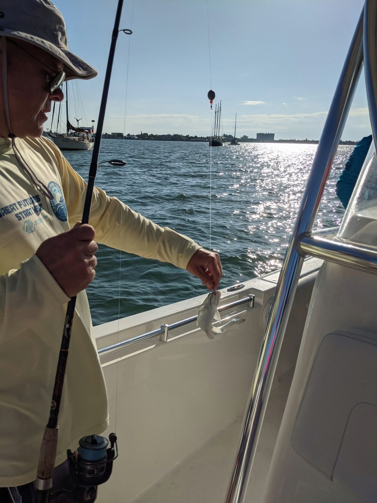 As always, Tania was right. We anchored up on one of our favorite channel markers and within a short time the fish started cooperating. Other than my cousin Marlena, who wasn’t fishing, we all caught some fish. It wasn’t the best day fishing, but I was relieved to have Abby and Maddie, my cousin’s daughters, catch a few fish.