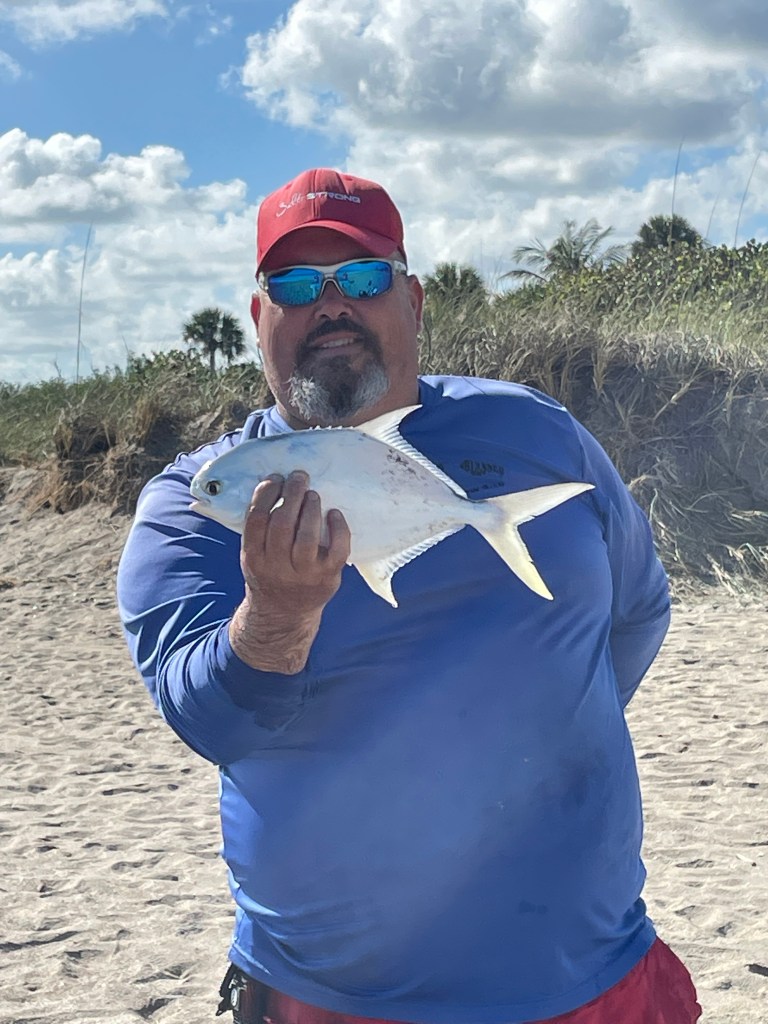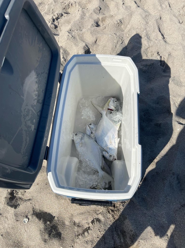 It was an absolutely beautiful day on the beach, with the turquoise water, light wind, and perfect temperature. We ended up fishing until 1:00pm and the main reason we left was we all got tired of reeling in fish and casting back out. Surf fishing is quite the work out. Tania ended up catching 10 Pompano, two were legal, and one blue fish. Darryl caught seven Pompano; one was 11-inches which is legal however we released it. Rylie, Darryl’s daughter, caught two short Pompano, and I caught two Pompano, one being legal and the largest of the day at 15-inches. Honestly the only reason I caught the two fish was because Tania was too tried to run to the rod and reel it in!