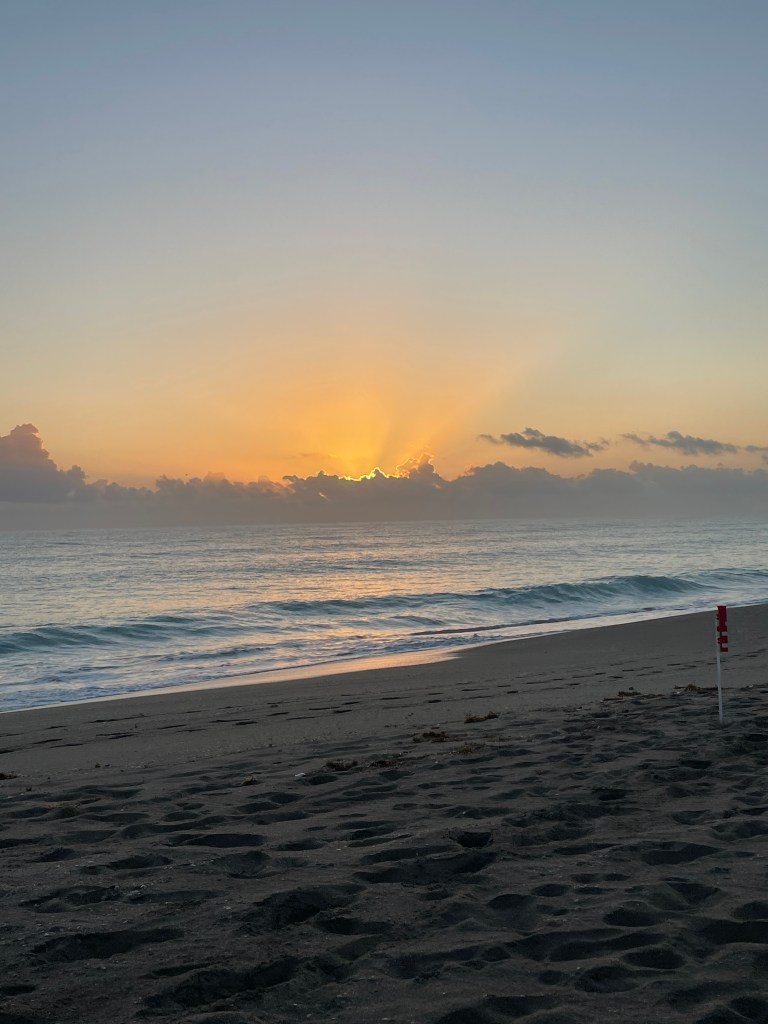 As soon as we arrive and I’m loading the cart Tania goes and saves us a spot to set up. On this day we went slightly south from the beach entry way. I was grateful we didn’t have to walk to far as it’s quite the workout lugging all the gear in the sand.