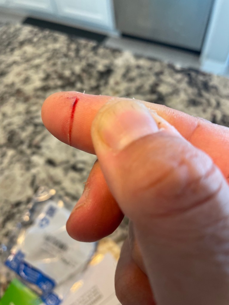 On my second cast I hooked up with something much larger. It hit the line pretty hard, which made me instinctively grip my rod tighter. Unfortunately, I had my pointer finger holding my line to fill the bite and when I gripped down on my rod the line cut my fingertip pretty good. I learned a valuable lesson. I fought this fish for a bit before I lost it near the boat. It was a nice fish and if I had to guess it was on the upper end of the slot, but since it broke me off, I did not get a measurement on it.