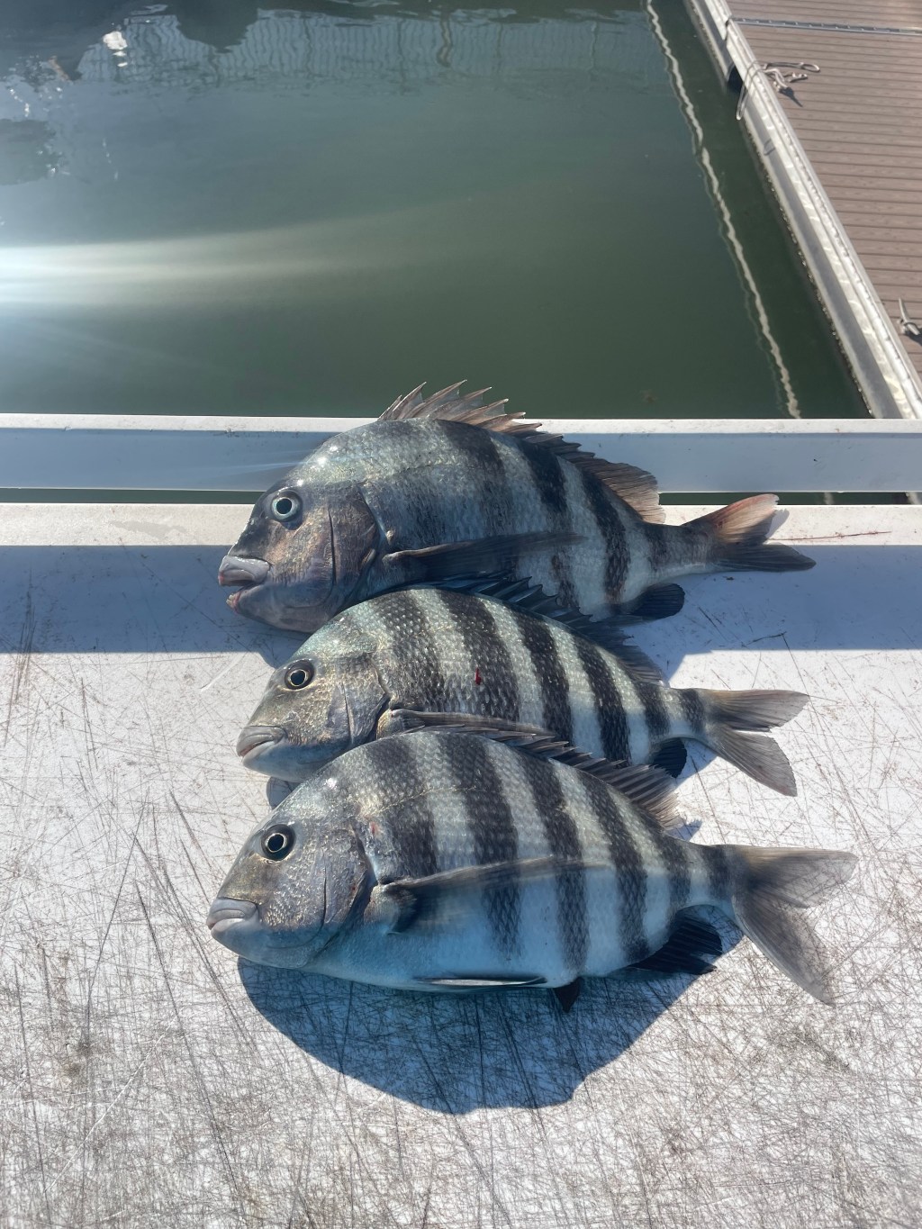 I rerigged, baited up, and tossed out again. It wasn’t long before I was fighting another fish. This time I landed a 12in sheepshead. I normally don’t keep Sheepshead under 14in, but they have been hard to come by for me, so it put it in protective custody.
