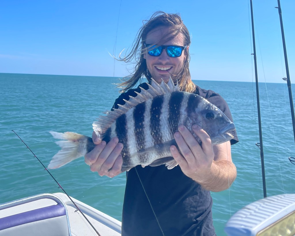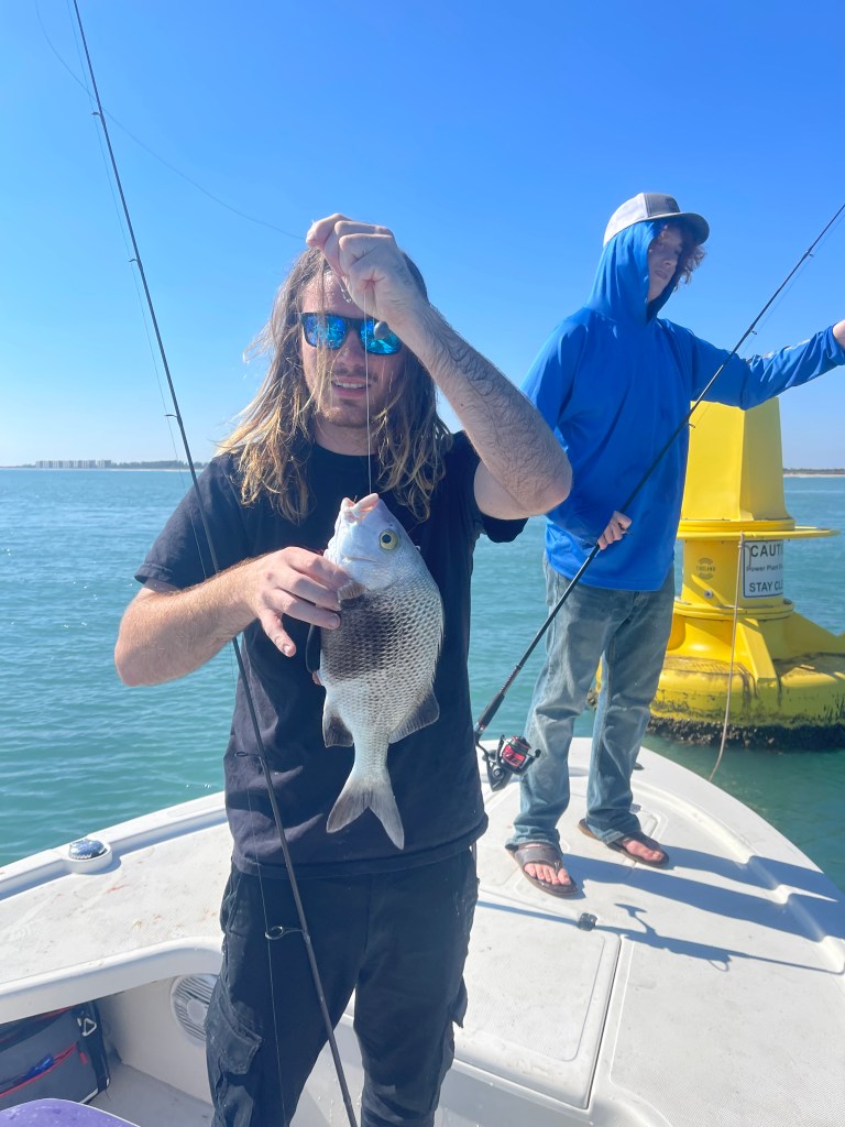 After the drift they decided to anchor up at the east buoy. They caught lots of fish and even saw a school of small Cobia swim past. Zack is fairly new to fishing so Matt told him what to do to try and catch one as they swam past. Unfortunately, he did not get them to hit the bait. They spent an hour and half at the buoy in which time they landed Zack’s first Sheepshead, a Spanish Mackerel, and a couple Black Margates.