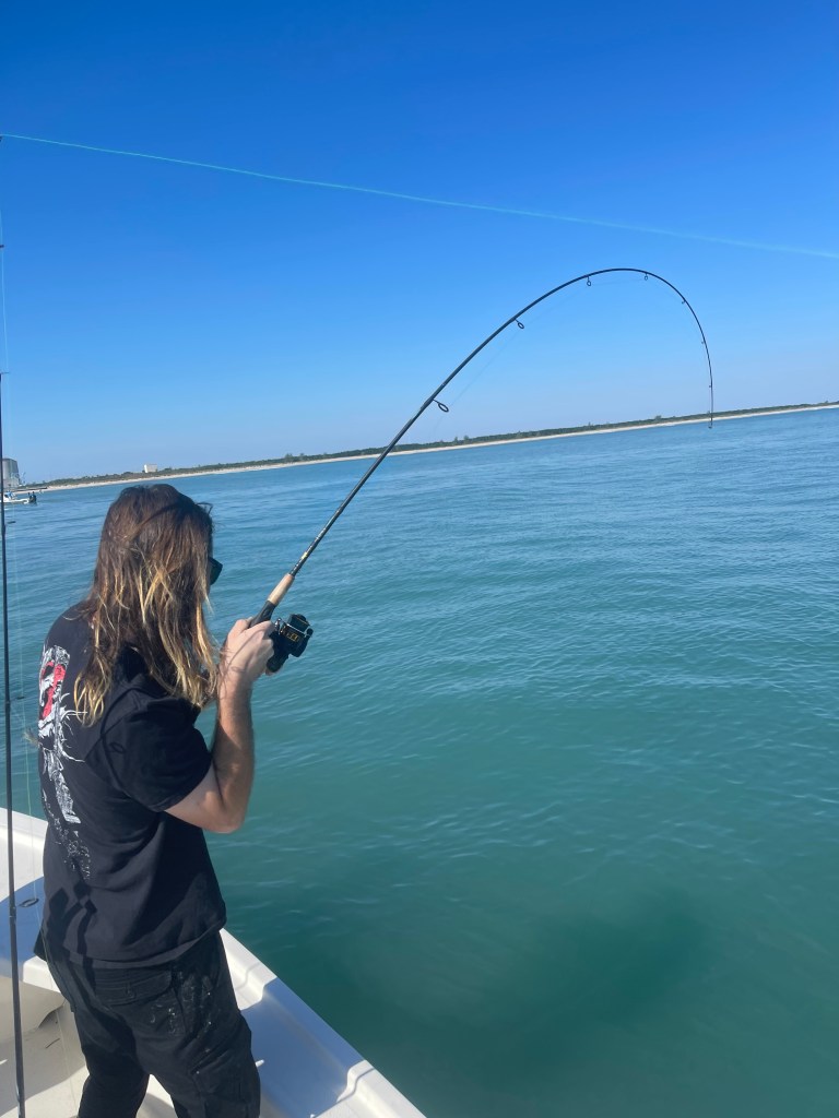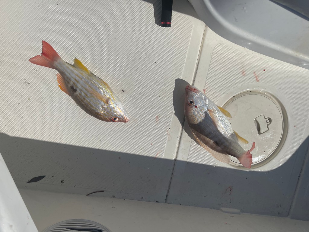 With the beautiful weather, Matt decided they would start off at the boils. With the SW wind it was flat on the way to the boils. Once they arrived, they did a drift into the boils. They caught Bluerunners and Jack Crevalle. Matt mentioned there was a ton of life and they saw lots of sharks, so he chunked up a Bluerunner to try and put his son on a shark. They hooked up on several sharks but were unable to land any since they did not have any wire.