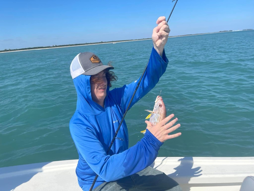 At this time, Matt decided to head back north to Fort Pierce Inlet. He took the boys to the north side of the north jetty. They started throwing shrimp along the rocks. They were not using any weights. They catch a ton of snapper in this spot, unfortunately after about 30 minutes, Matt noticed they were drifting, and the anchor line was gone. Unfortunately, the anchor line came untied and was gone. They had to call their day short due to losing the anchor.