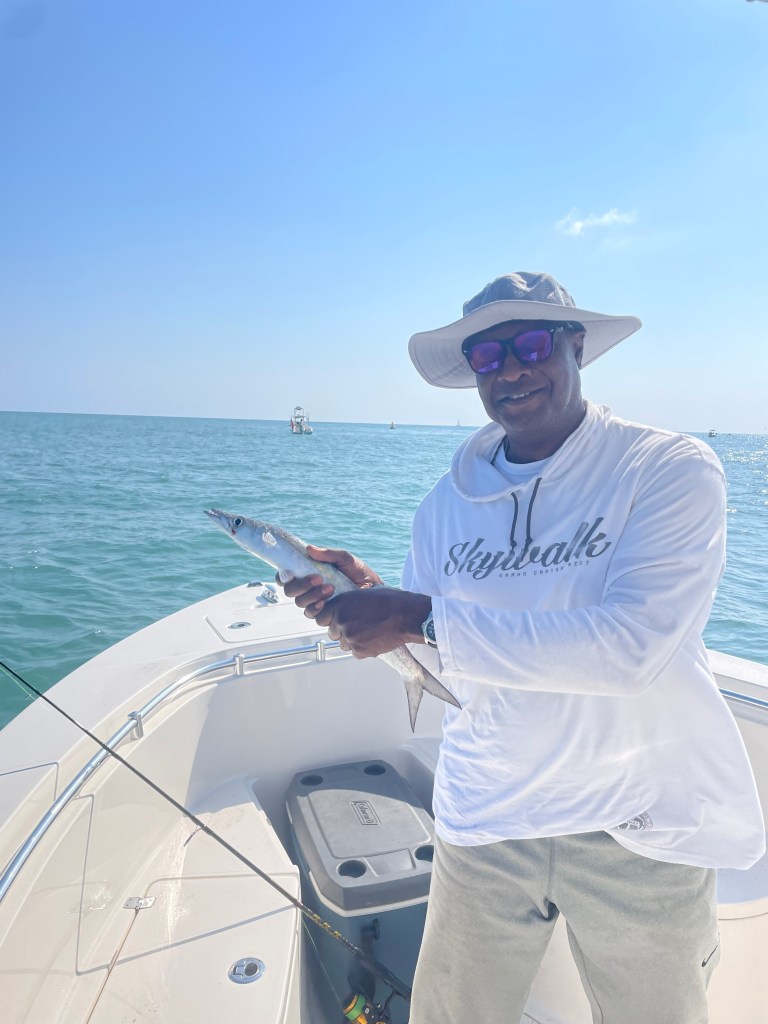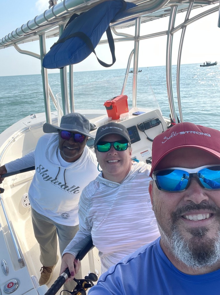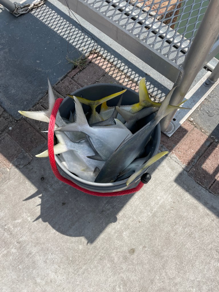 We maintained drifting near the shore and moving eastward towards the buoy. The west wind and incoming tide favored our drift, resulting in a continuous stream of catches. During the three-hour of fishing, we lost count of the Blue Runners, Blue Fish, and Jack Crevalle we caught. Ron, however, encountered a larger fish that he struggled with for some time before it eventually broke off. It is believed it may have been a shark, but without visual confirmation, we are uncertain. As usual Tania out fished Ron and I together. Ron even questioned how Tania kept catching fish as he was fishing beside her. She lived up to her nick name of the Fish Whisperer, although Ron called her the Fish Assassin because she doesn’t eat the fish, she just likes to catch them.