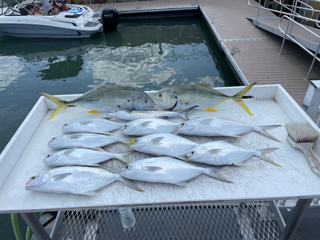 At 11:30am, we concluded our fishing trip and returned to the dock with a catch consisting of nine Pompano, two Jack Crevalle, and one Spanish Mackerel. The cleaning process took nearly an hour, after which Ron and I split the catch. I kept three of the Pompano, which I intend to use for my personal meal. The Jack Crevalle, on the other hand, I intend to utilize for fish dip. For more details on my fish dip recipe or my meal, please click on the links below to access my recipes for Jack Crevalle Fish Dip and Blackened Pompano.