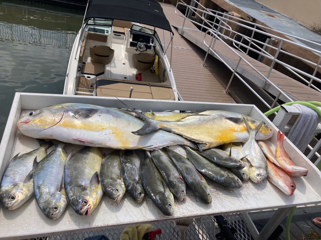Over the next three hours, they caught over 75 fish, mostly Blue Runner, Jack Crevalle, and Pompano, but they also managed to connect with three more Permit. At the end of the day, they returned with two large Permit, 14 Pompano, and three Lane Snappers. Exhausted from the day’s activities, they finished cleaning their catch and equipment, reflecting on how blessed they were to live in such an amazing place and share these experiences with good friends.