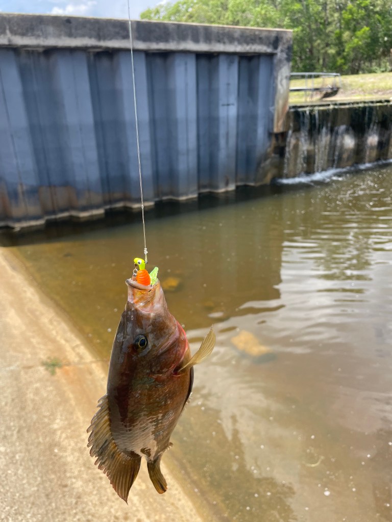 As I walked up it was very promising as I saw multiple large Tilapia and they appeared to be bedding. I was throwing a 1/16oz Road Runner Jig, I believe pumpkin color. Unfortunately, I walked around the entire pond and didn’t even get a bite.
