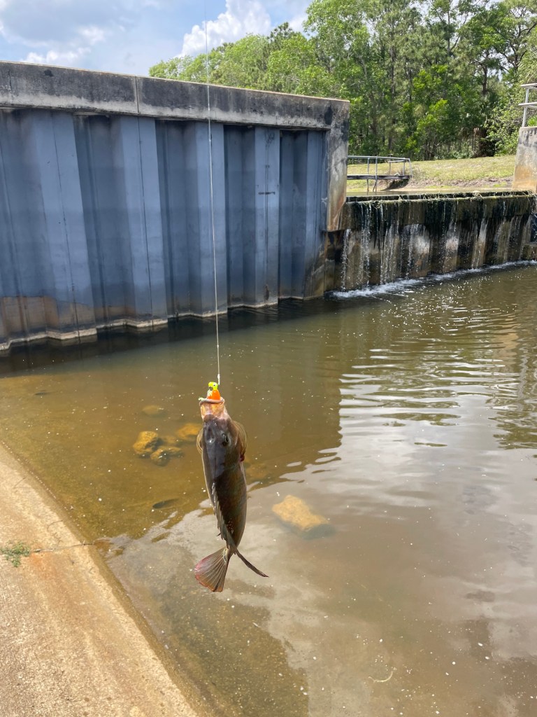 At this point I went to the spillway at the canal across the street to see if I would have any luck. It started off a bit slow. It took me about 5 minutes before I got my first bite; however, I lost whatever I hooked before I saw it. Shortly after my first bite, I landed a cichlid. I ended up landing another cichlid before I decided to fish above the spillway.
