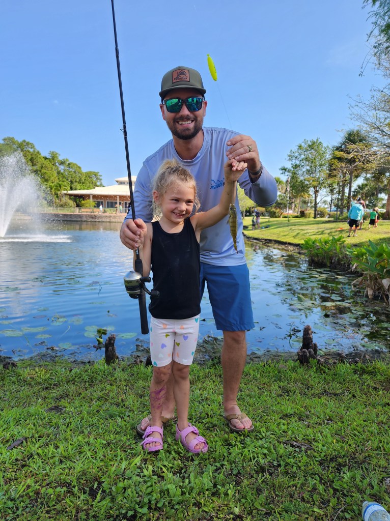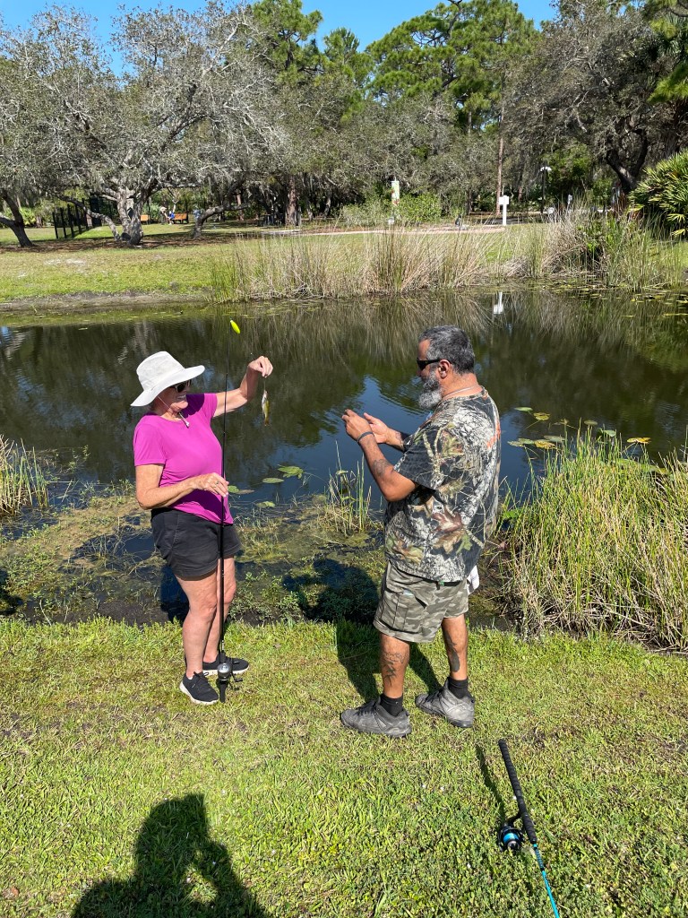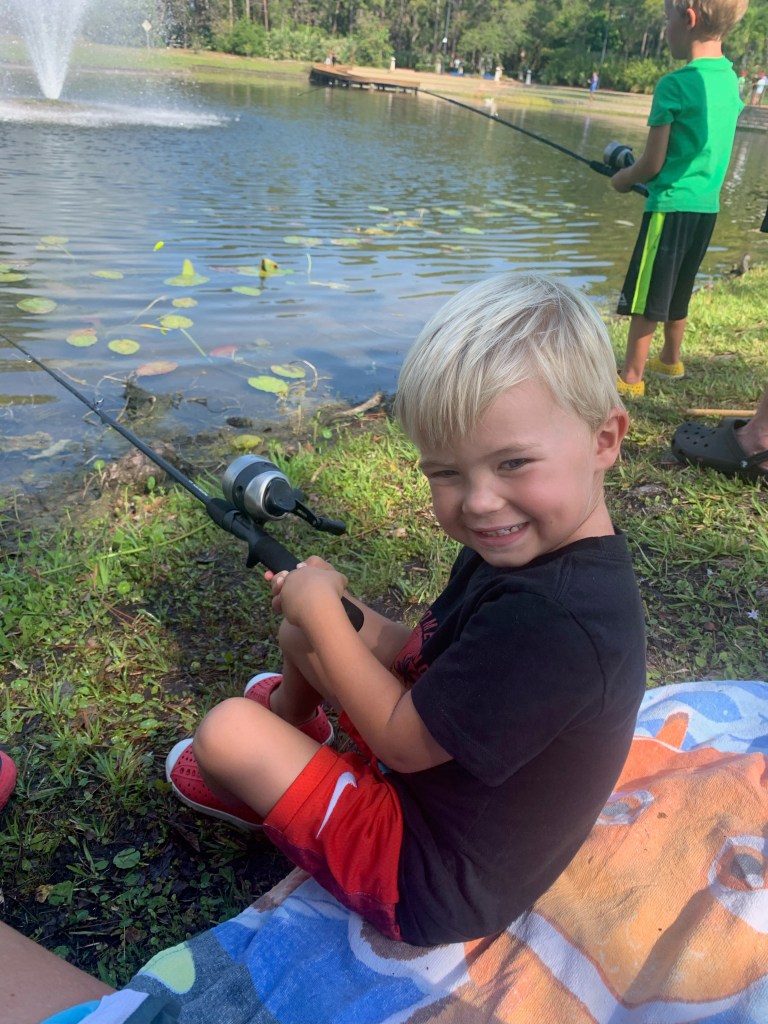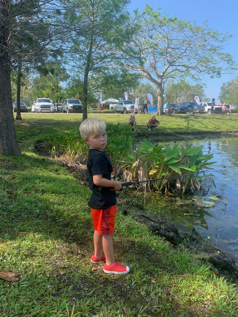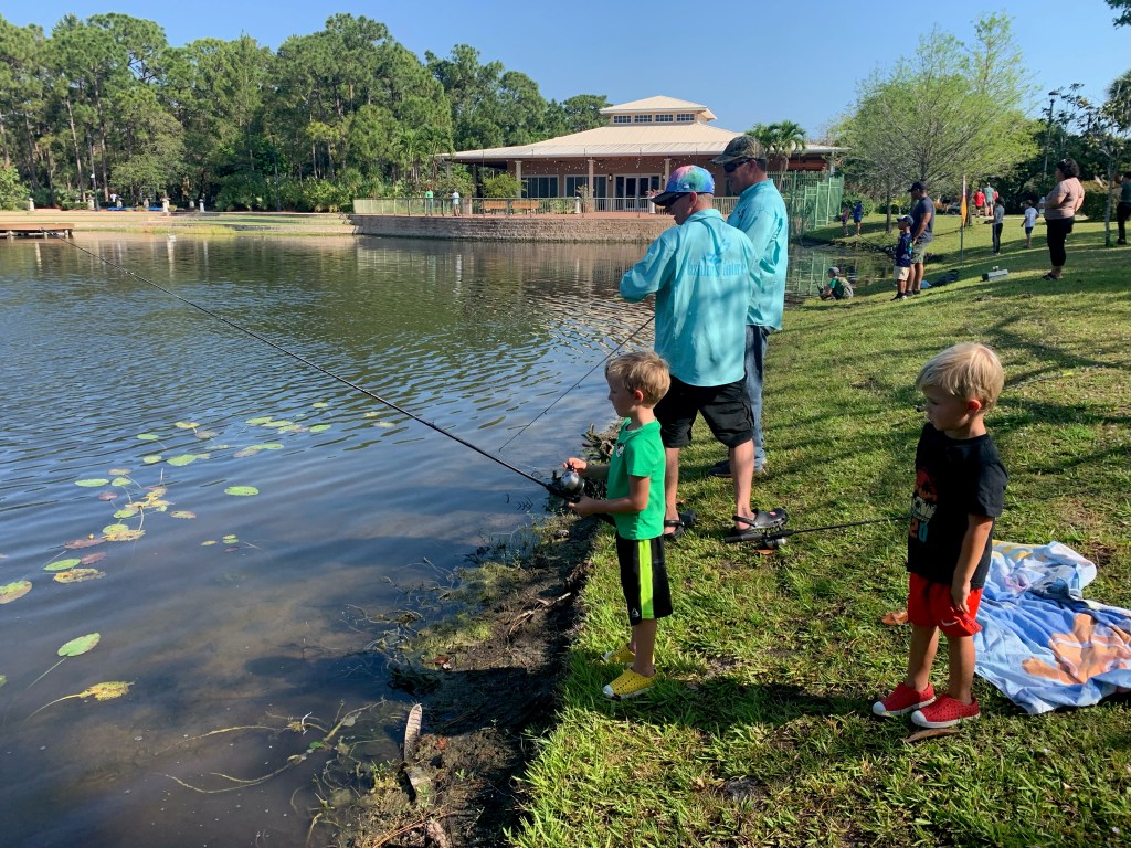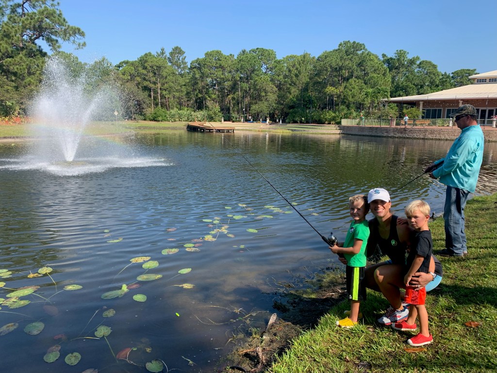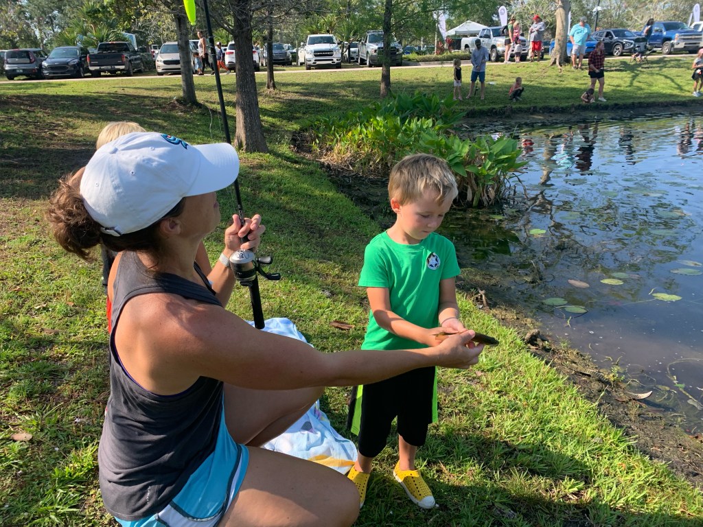 About 9:45am we brought all the families back together. We went over a few water safety concerns while fishing. First was always keeping an eye open for alligators and second was to watch the bank for fire ant mounds. I myself was unfortunate and stepped in one or two while talking with participants. After the short brief we provided all the participants with rods/reels and baits and we went fishing.