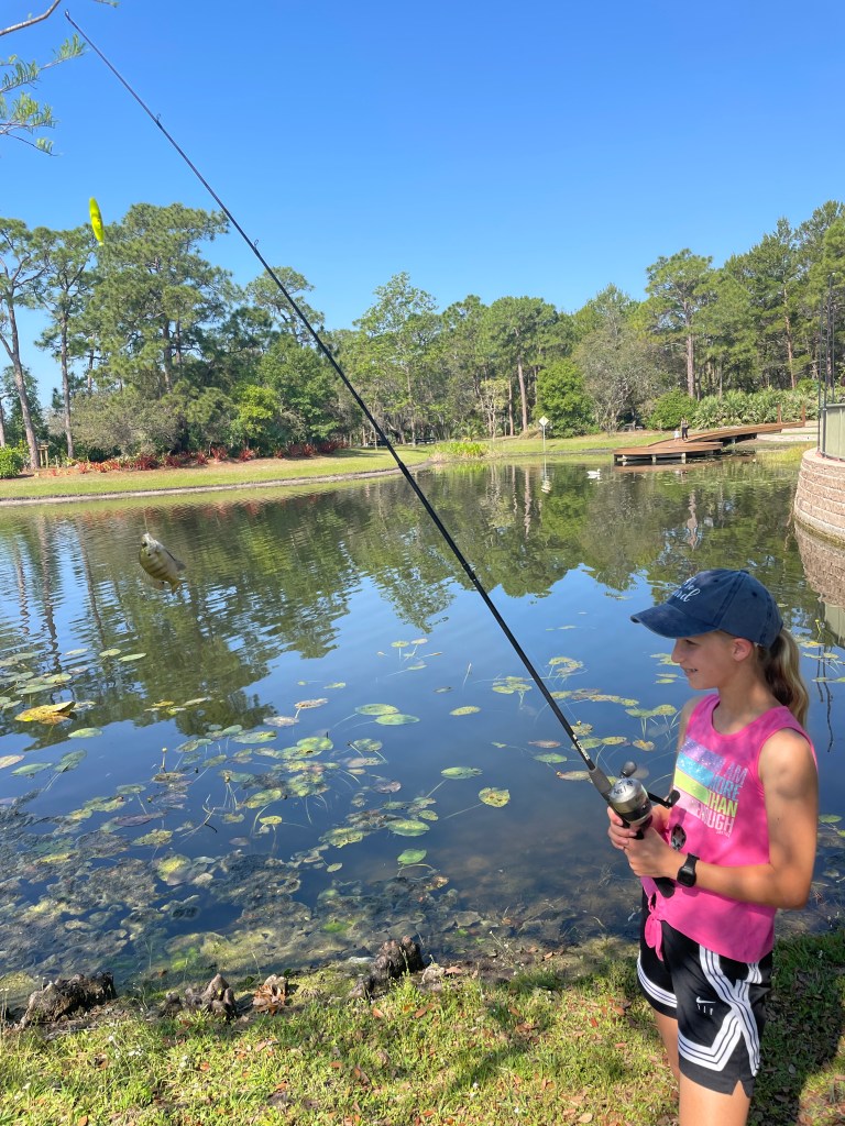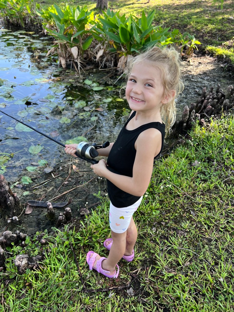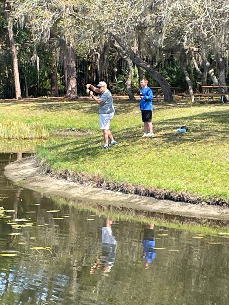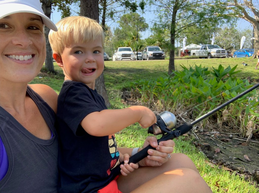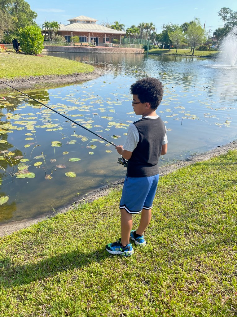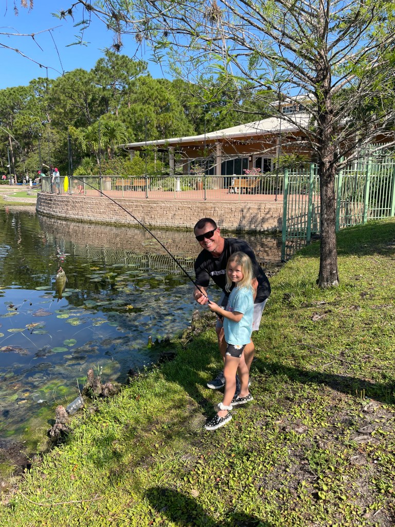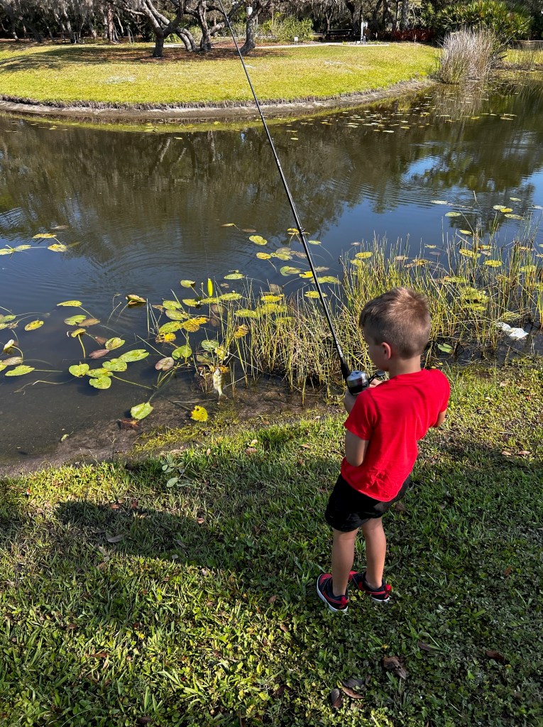 About 9:45am we brought all the families back together. We went over a few water safety concerns while fishing. First was always keeping an eye open for alligators and second was to watch the bank for fire ant mounds. I myself was unfortunate and stepped in one or two while talking with participants. After the short brief we provided all the participants with rods/reels and baits and we went fishing.