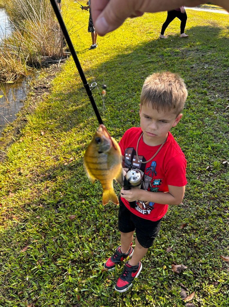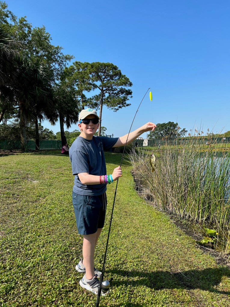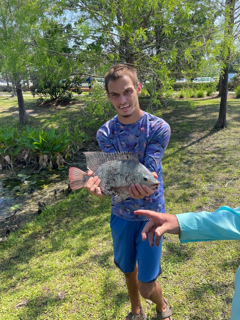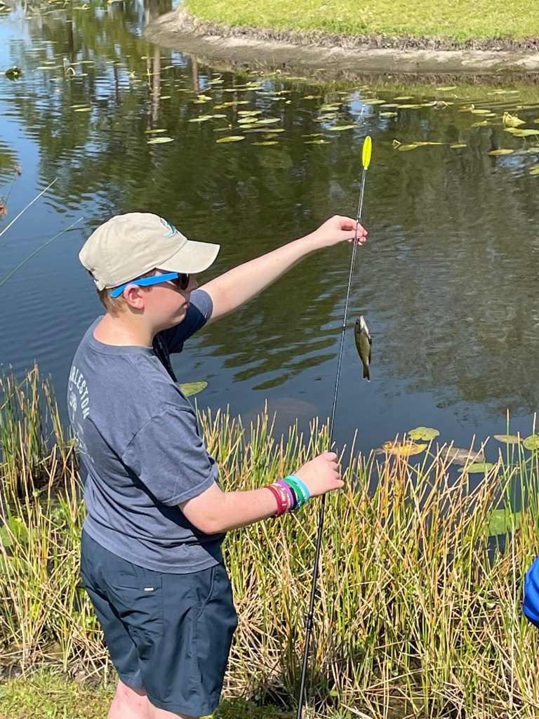 We fished from about 9:55am to 10:50am. It was hot and humid but the bite was on fire. Nearly everyone caught a fish. I think there were four kids who did not catch fish; however, everyone else caught multiple fish. Our volunteers did our best to try and get everyone a fish, but not catching fish is part of fishing. It’s not a lesson we want to teach our participants, but it is a valuable lesson.
