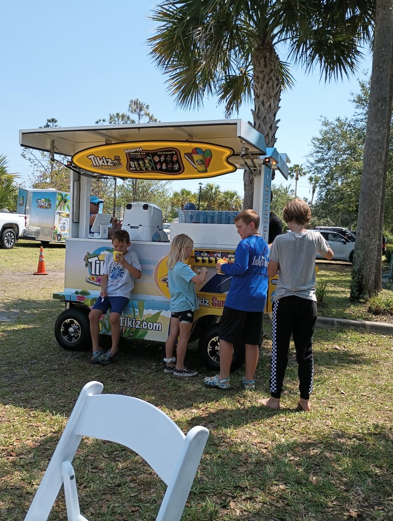 At 11:00am Sage, one of the young ladies attending our event, blessed our lunch. Synergy Magnet School provided bagged lunches and we had Tikiz Ice for dessert. The shaved ice was a nice treat on this hot day. The participants all seemed to really enjoy the time spent eating a meal together as a family!