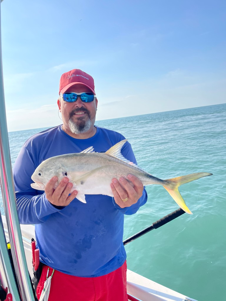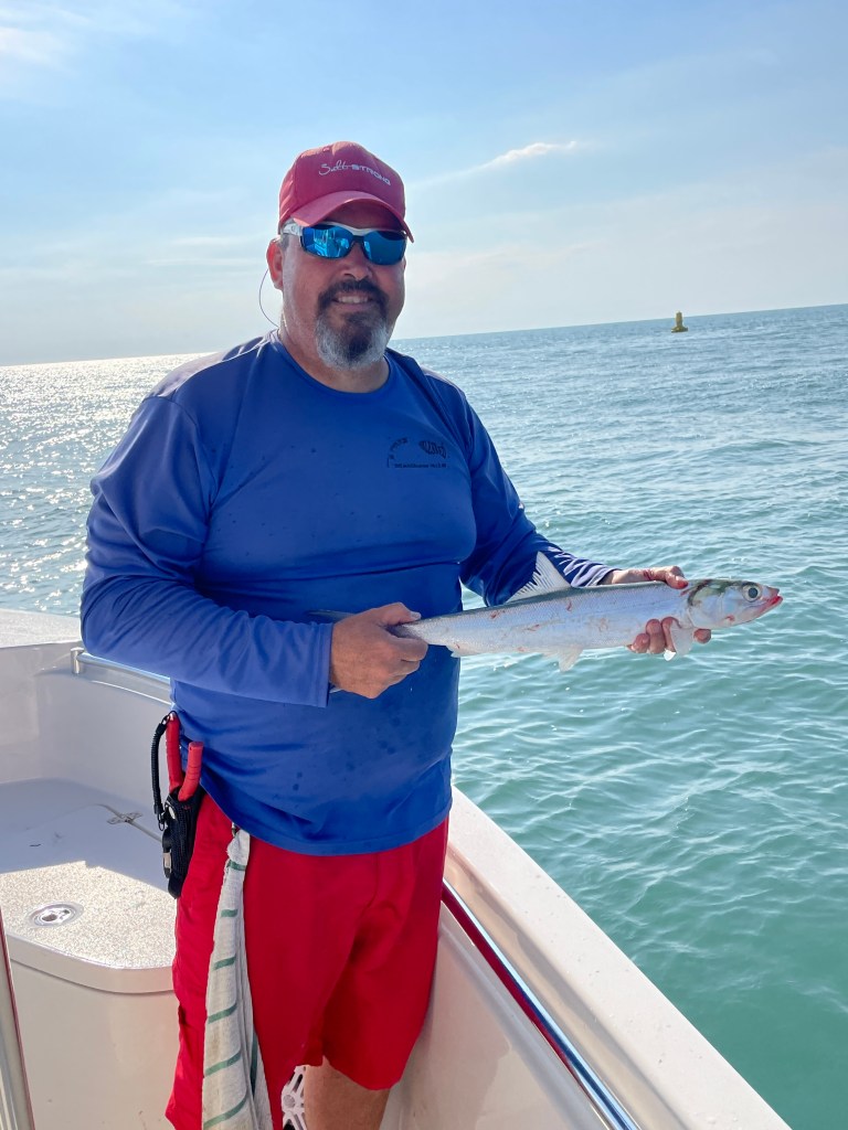 Once we got close to the boils the sun was higher in the sky and we could see the water was dirty. I was a bit disappointed as I knew this meant we would not catch any Pompano or Permit; however, we made the run so we were going to see what we could catch. Before we pulled up to our first spot to drift, we passed our friends from the boat club who beat us out and had already started drifting. They signaled the bite was slow.