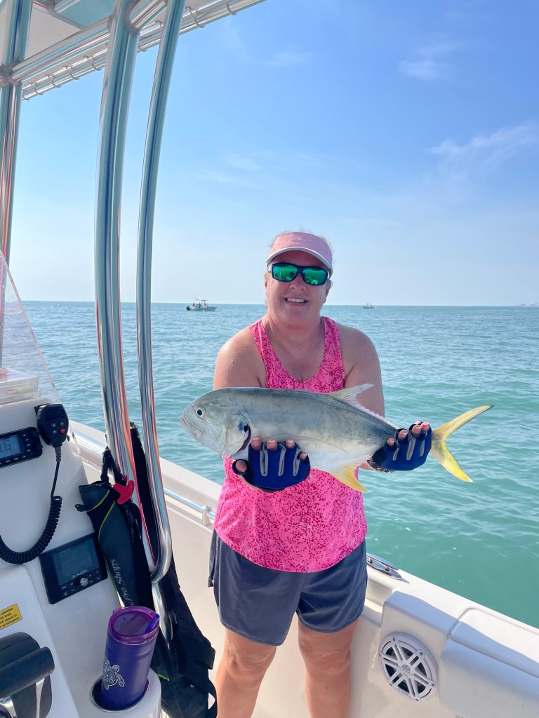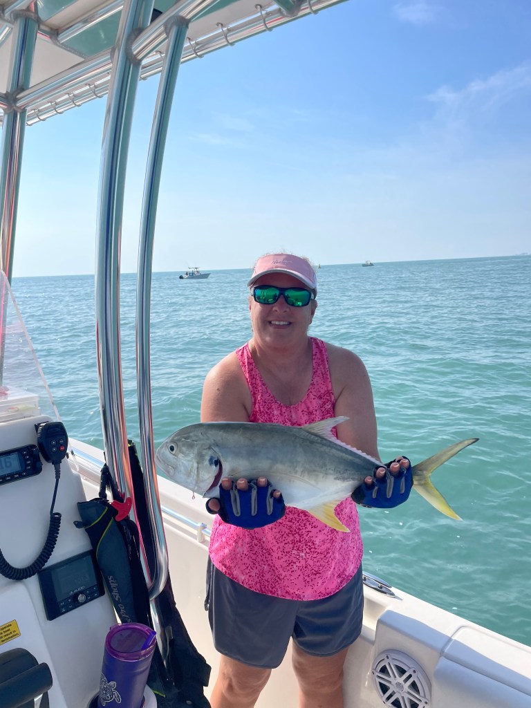 Because Tania had a long week and was tired, combined with the knowledge of afternoon storms, we decided we would head back in about 11:00am. From 7:30am to 11:00am the bite was slow but consistent. We lost track of the Blue Runners and Ladyfish we caught, and we had three Jack Crevalle in the cooler.