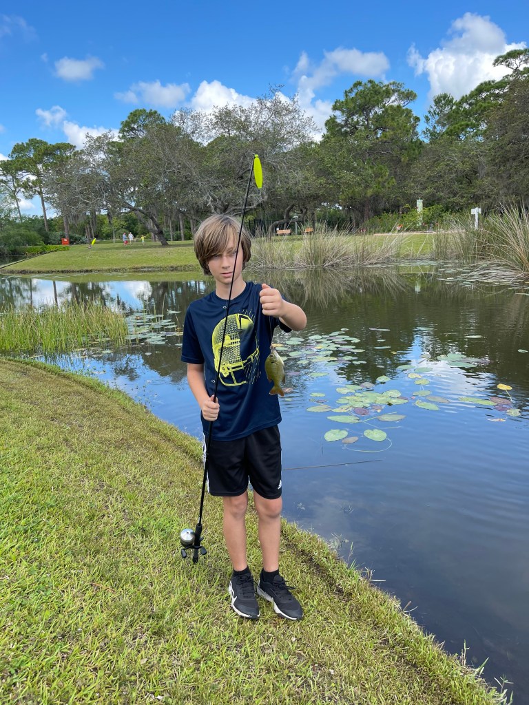 We continued fishing until 11:00 am, at which point we gathered the families to provide them with a delicious bagged lunch, graciously provided by Synergy Magnet School. Around 11:25 am, we organized a trash cleanup activity for the children. As a small token of appreciation, we awarded Publix sports bottles to two children who collected the most trash. I also had two additional bottles to give away, so I engaged the kids in a trivia game, with the first two to answer correctly winning the remaining bottles.