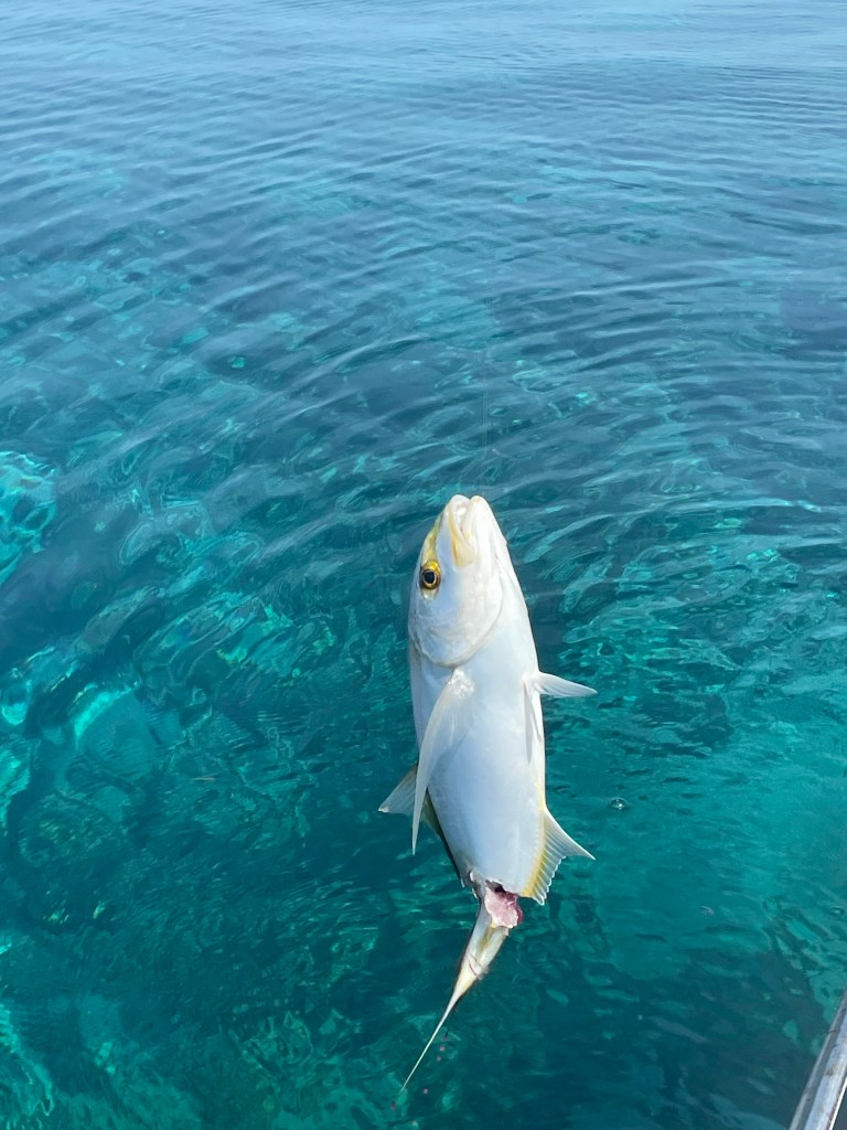 Captain Erwin took us out to the wall, which was about half a mile from the reef were the water dropped to about 1000 ft. During this time, I had a yellow jack chase my bait but turned away near the boat. We trolled the wall for about an hour; however, we didn’t catch anything, so we headed back to the reef.