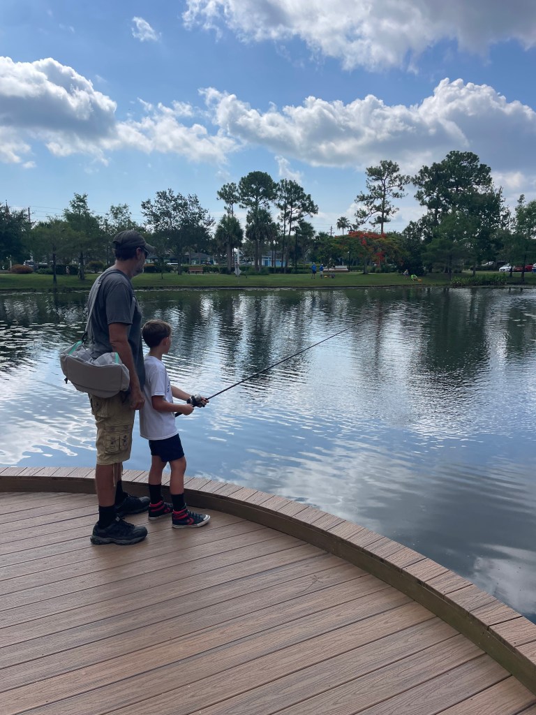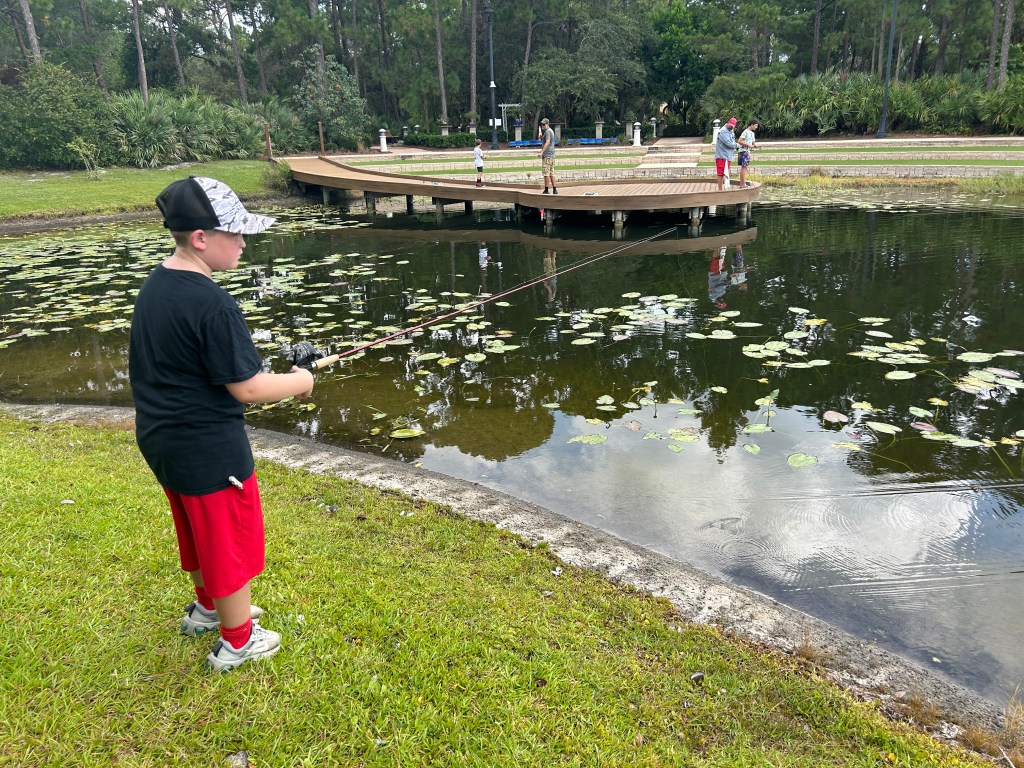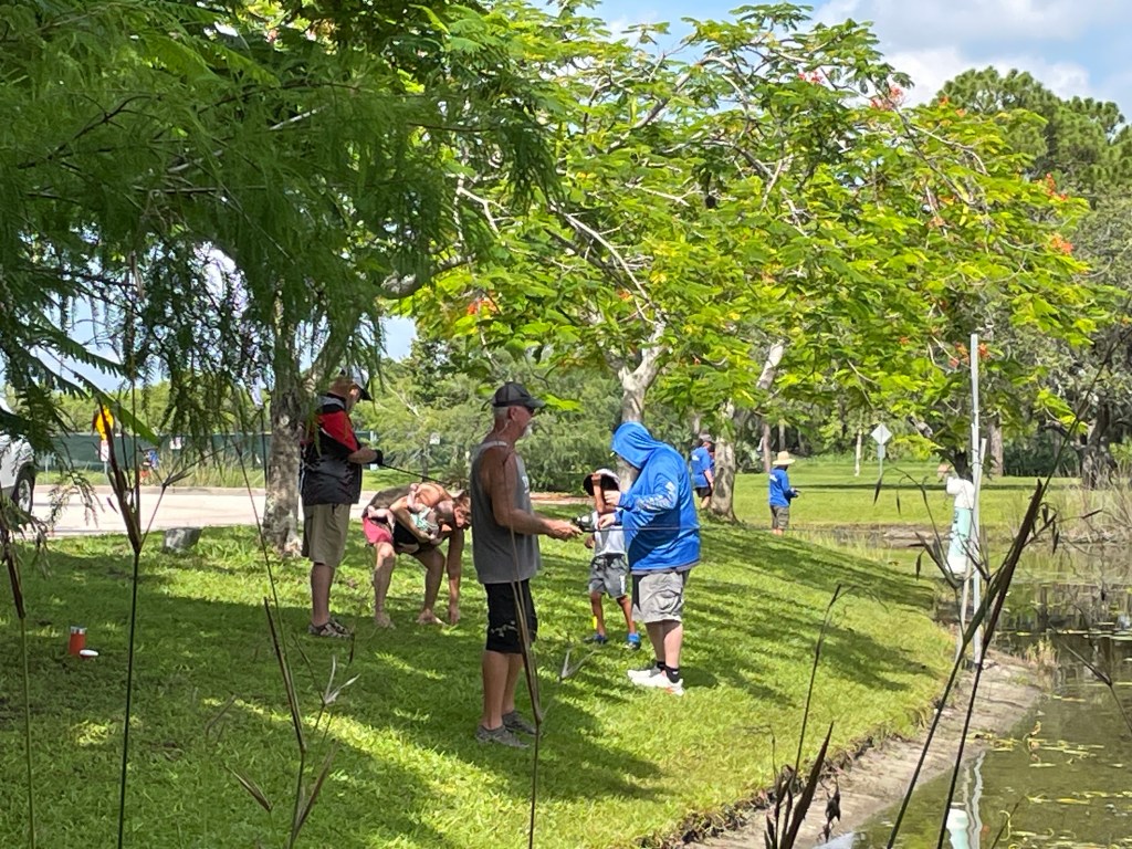 Once the tackle bags were passed out, each group went to their respective station. We spent about 50 minutes going through the stations, and then we went fishing. It was a very hot day, and unfortunately, only two fish were caught in the 40 minutes we fished, but the families all seemed to be having fun.