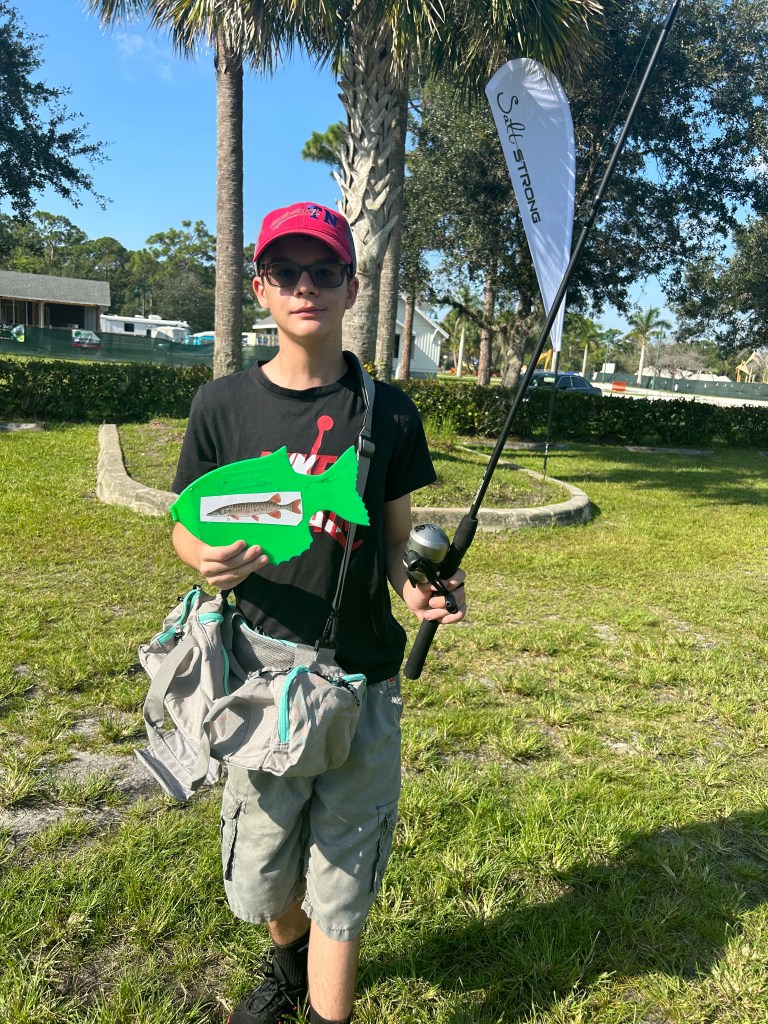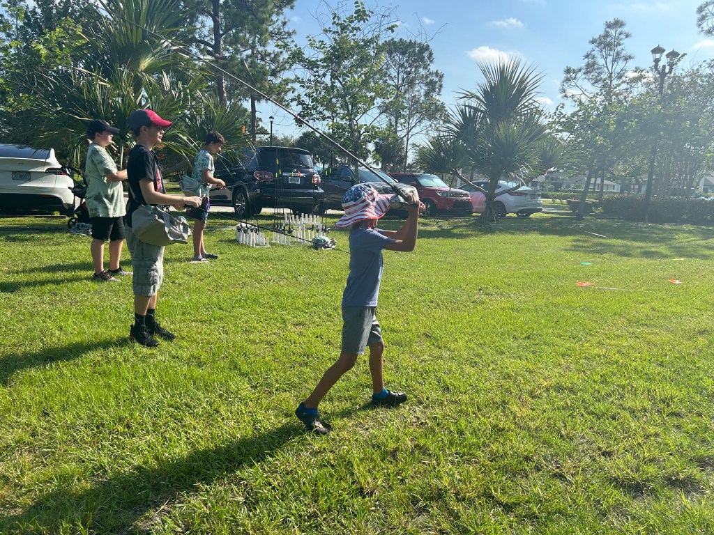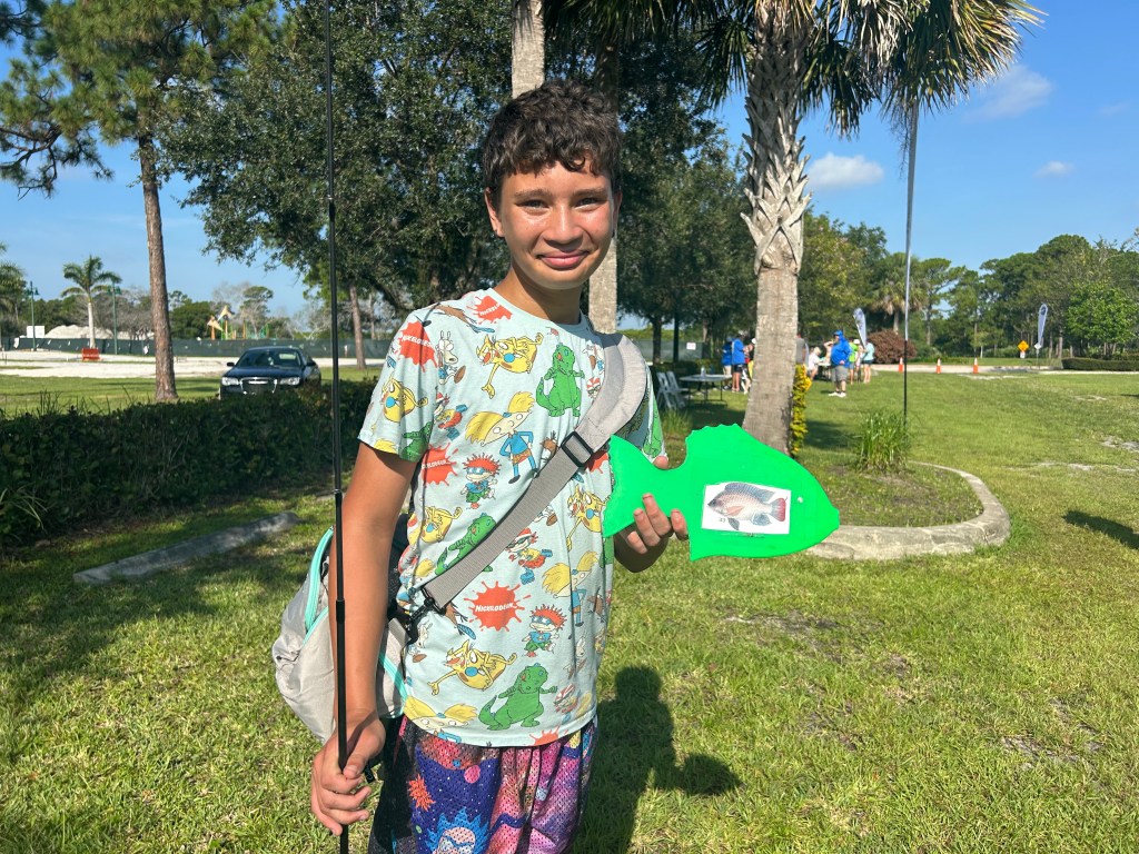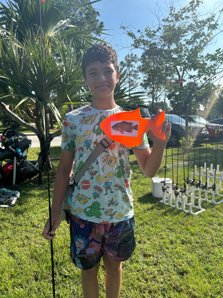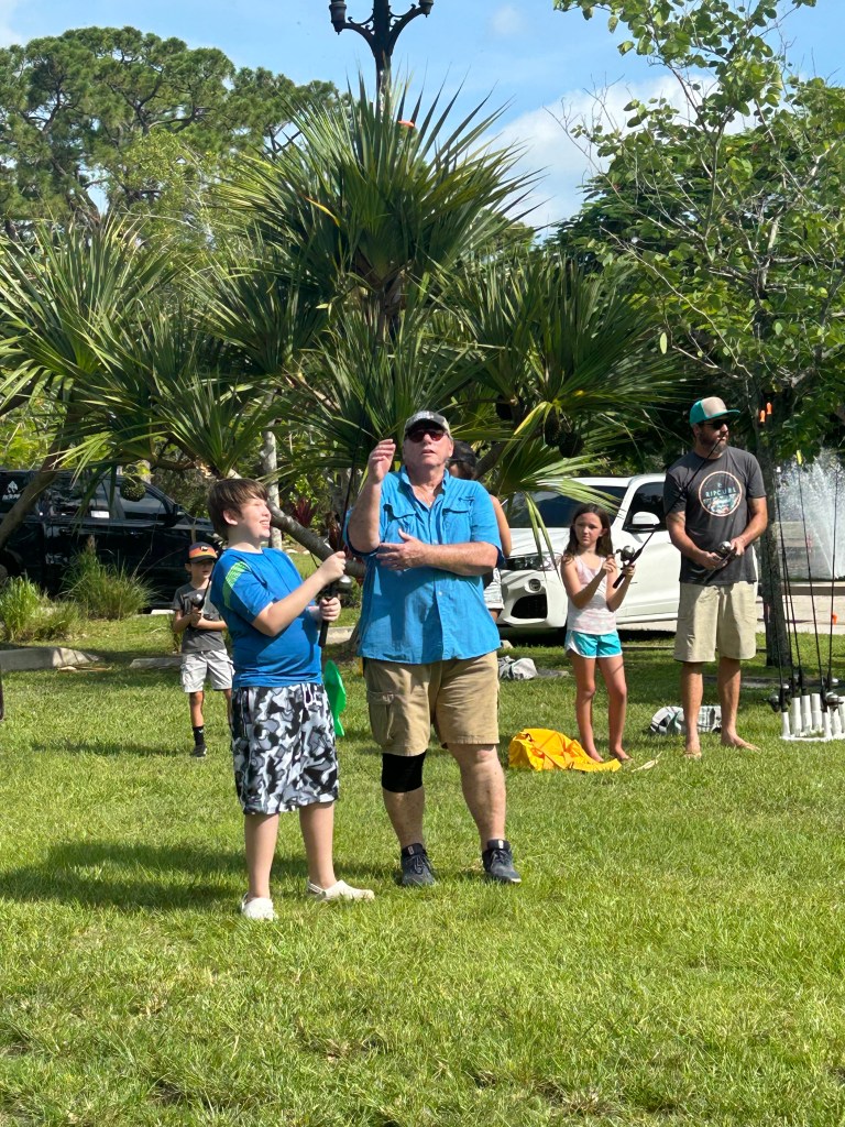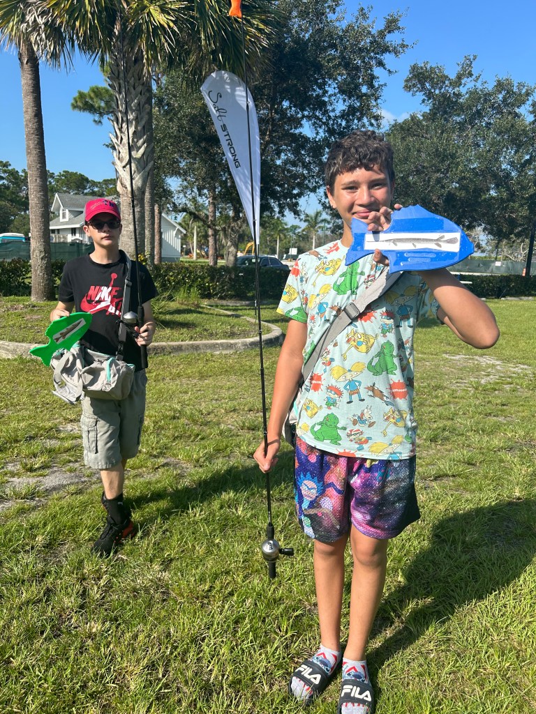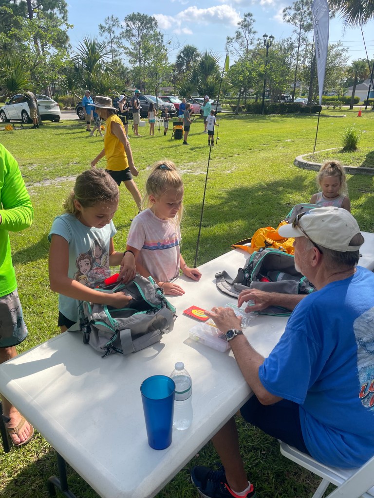 Once the groups were split up, we passed out tackle bags with all the tackle the families would need for artificial bait fishing, as well as basic freshwater. We bought the bags from Bass Pro Shop in Port Saint Lucie, FL, as they gave us a 20% discount. Salt Strong provided us with paddle tails, Forest to Seas Adventures provided us with Fair Hope popping corks, A&S Jigs provided us with jig heads, Danco Pliers provided pliers, and Boomerang Tool Company provided us with SNIP fishing line cutters at cost. Reel Blessed also provided hooks, bobbers, a notepad, and split shots. We were planning on giving out one bag per family; however, since we had so few participants, each child got their very own tackle bag.
