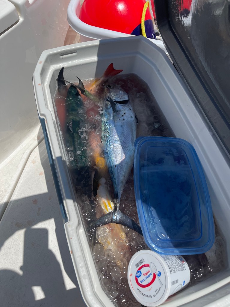 About 11:30am we were all hot and I was ready to head in. It was a long weekend and the sun was taking its toll on me. On the way in I stopped at the first bit of action we saw on the surface. I couldn’t resist, and it paid off. I hooked up with a decent bonita. I was happy to have caught the bonita as I was heading to two 4th of July parties and I promised to bring fish dip if we caught fish.