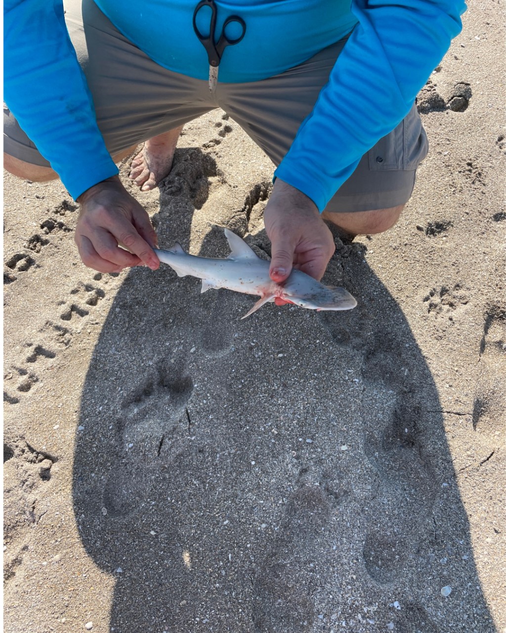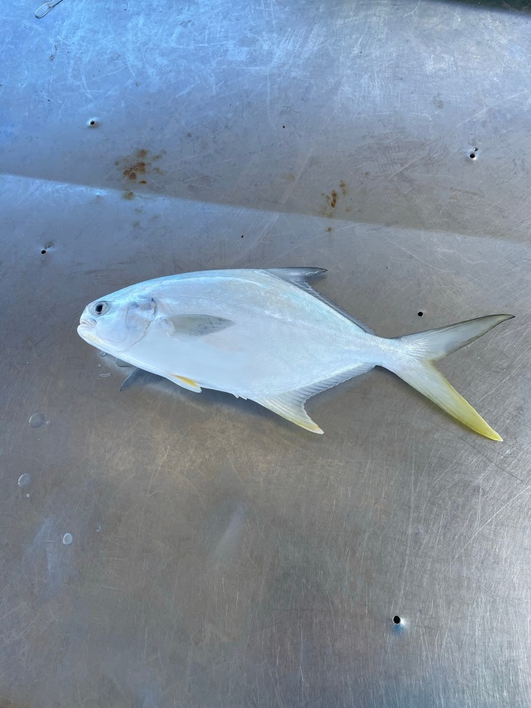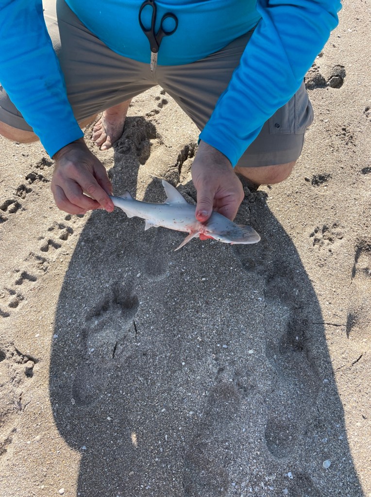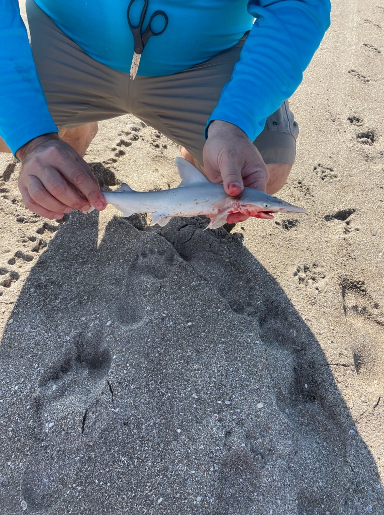 On October 10, 2021, Tania and I decided to spend church on the beach! We arrived around 7:30 am, hopeful the recent cold front would turn on the pompano bite. While we were waiting for our first bite, Tania was able to see a sea turtle right off shore and a spinner shark breach the water 30 feet off shore in front of us.