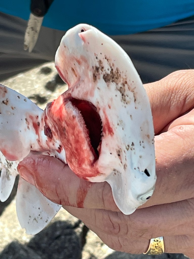 About noon, Tania and I were the last ones fishing the beach. Since it was just past high tide, we decided to pack up and head home. We ended up stopping at the cleaning station near the boat ramp on the west side of the South Causeway bridge.