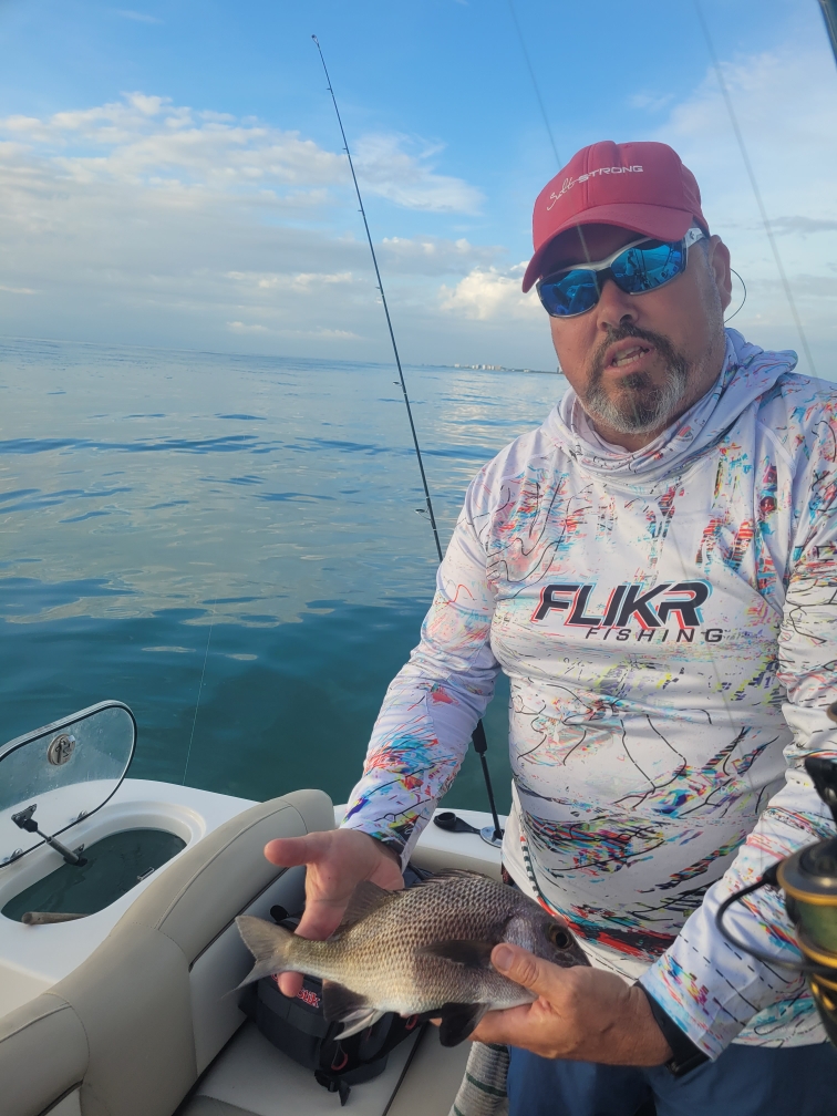 We arrived at the first spot, which was just south of Vero Cove, about 7:15 am and it didn’t take us long to wet some lines. With the current conditions our drift was northwestward. It took about 10 minutes for the first bite. Tony landed a small lane snapper. It was the right species; however, it was too small to keep.