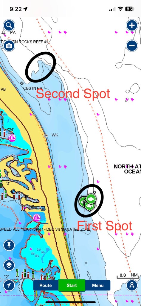 It was a bit rough heading out the inlet, but we could tell that it smoothed out once you were out. The plan today was to head north to Vero Cove and see if we could put some decent snapper in the cooler. The run to Vero Cove was a bit rough. The seas might have only been 2 feet but they were close together.