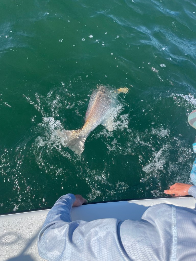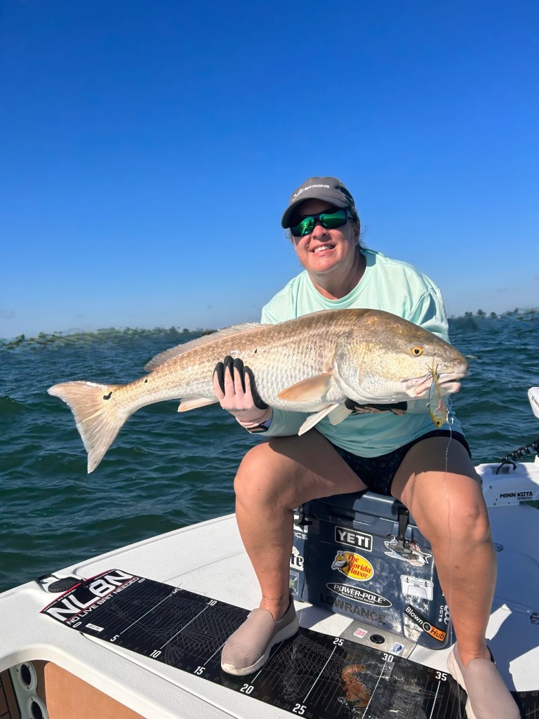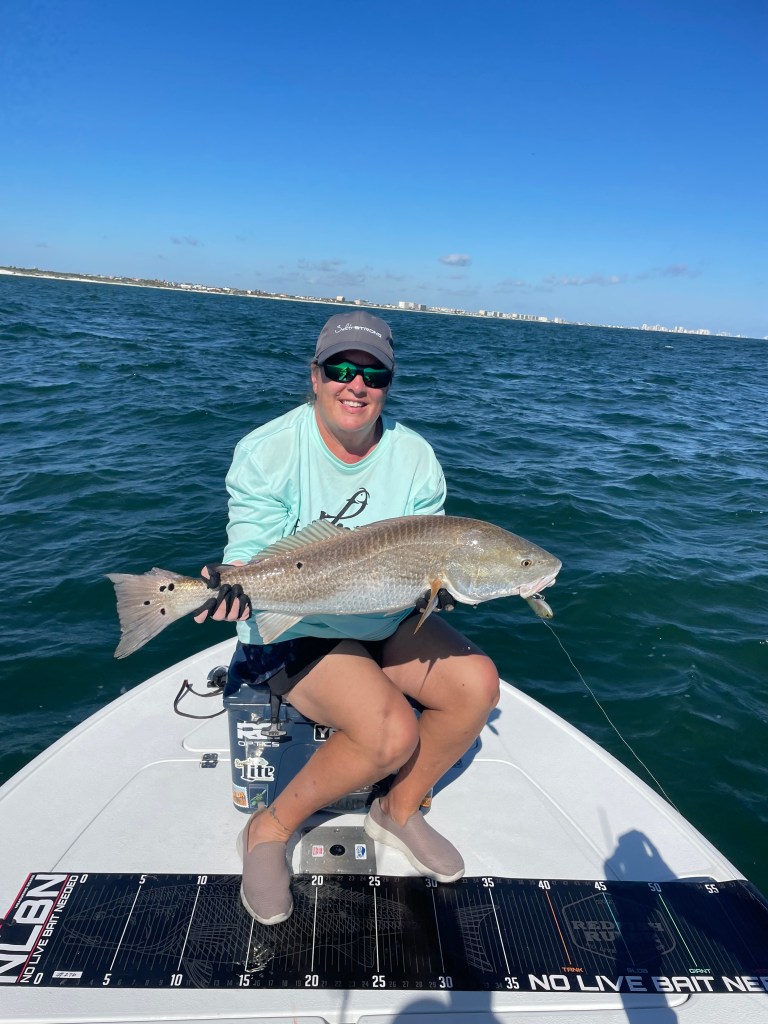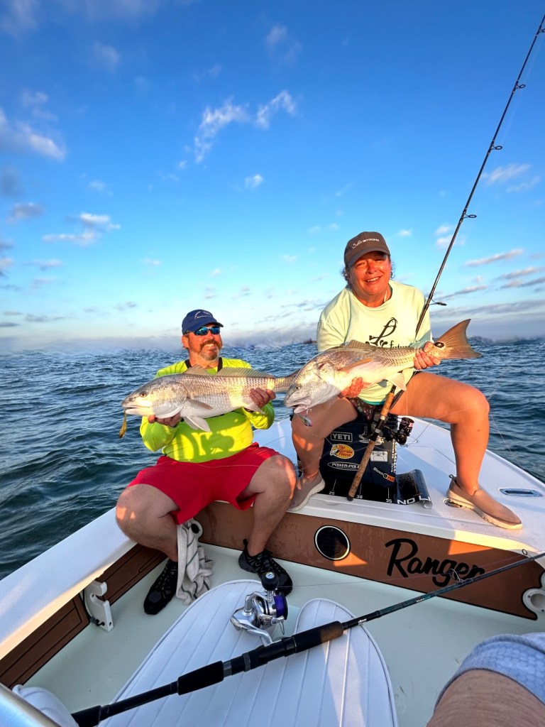 It was amazing to have Tania and I hooked up with large redfish first thing in the morning. I was praying this indicated how the rest of the day would go. Once we had both our fish onboard, the captain wanted to get a picture of both of us holding our fish.