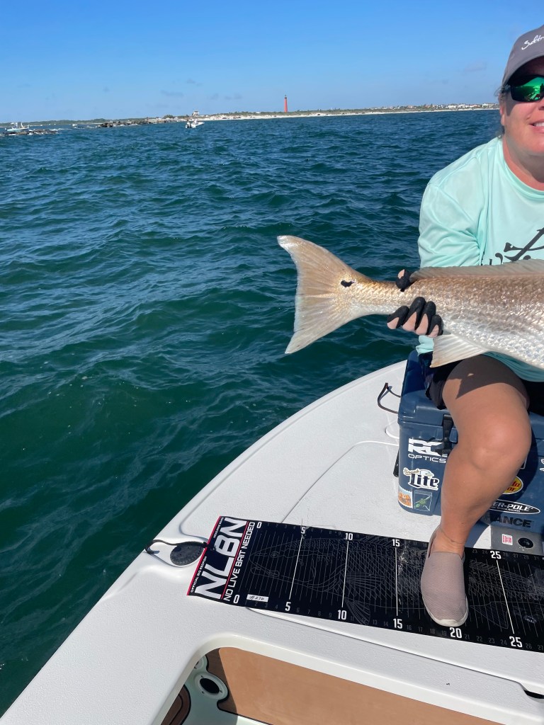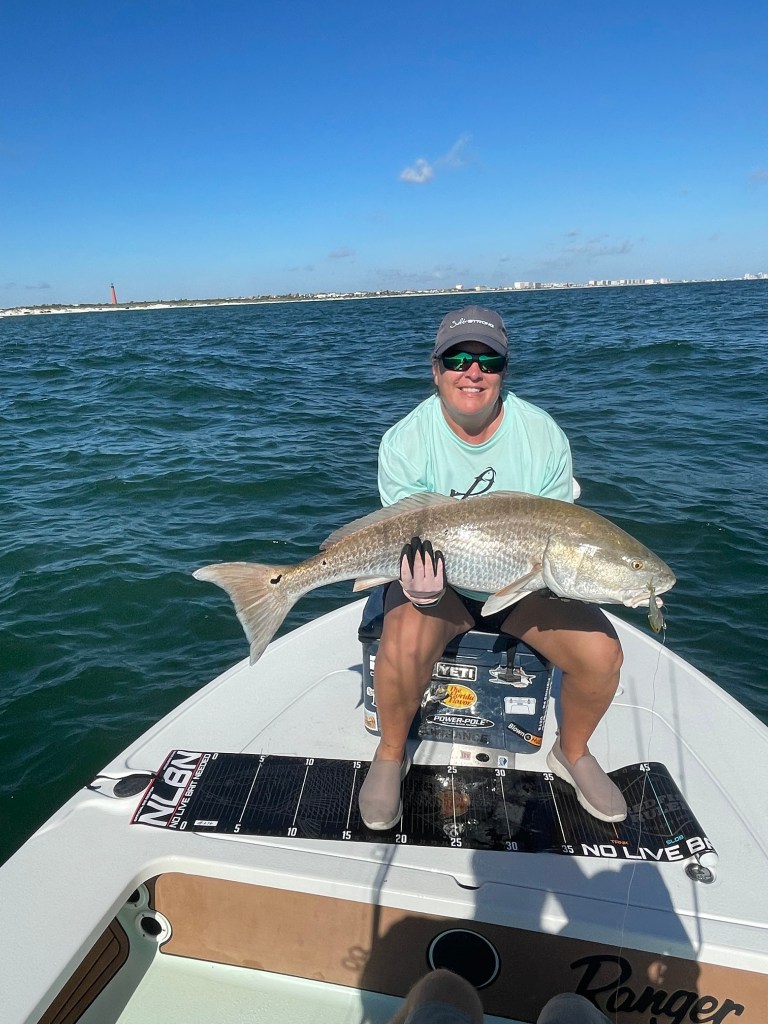 Captain Isaiah was good at locating the schools of redfish. We pulled up to the first spot, and he told us exactly where to cast. Tania started by throwing Nomad Design Squidtrex, and I threw Vertrex Max Vibe. Tania didnβt take long to hook up; I hooked up as she brought in her fish. Tania landed a small crevalle jack while I was fighting my fish. I had something decent on, and it took a bit to get to the boat. Tania wasted no time in recasting and hooking up with a decent fish.