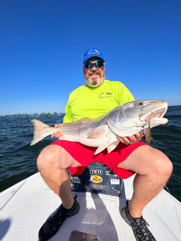 By the time our trip ended, we each caught three over-slot reds ranging from 30-39 inches, numerous jacks, a few ladyfish, and a few bluefish, all on artificial baits. We were also blessed by seeing multiple sea turtles, manatees, and dolphins.