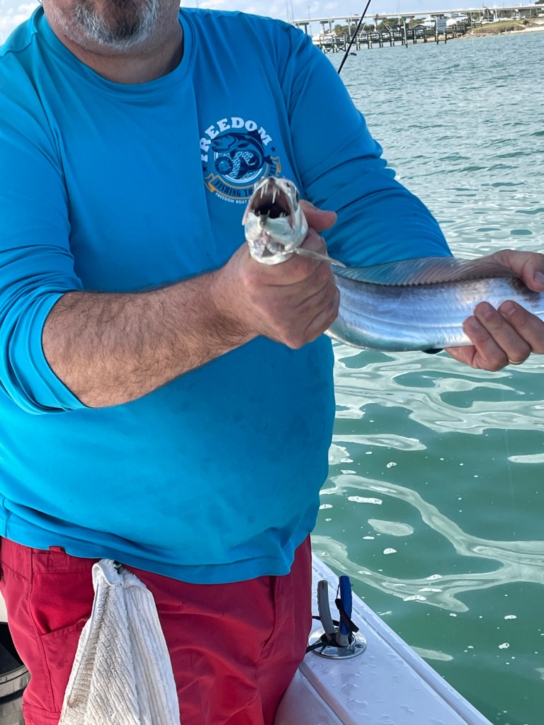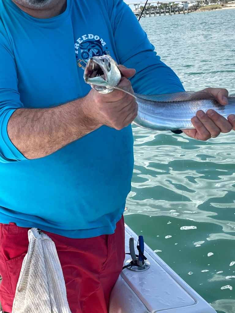 As the day ended, our fishing trip reached its conclusion. Despite the challenges and multiple changes in spots, from our favorite dock to the waters near Thumb Point, we grappled with short snappers, unexpected encounters with an aggressive bonnet head, and a surprise catch of a ribbon fish. Tania, expressing her frustration after a valiant effort, decided to call it a day, leaving me to reel in a ribbon fish—a silver lining to a day filled with highs and lows. As we waited to dock at the marina, a bonus round ensued, capturing the spirited dance of ladyfish in the water. In reflection, each fishing trip spins its tale, and this one, with its twists and turns, is etched in the annals of our angling adventures.