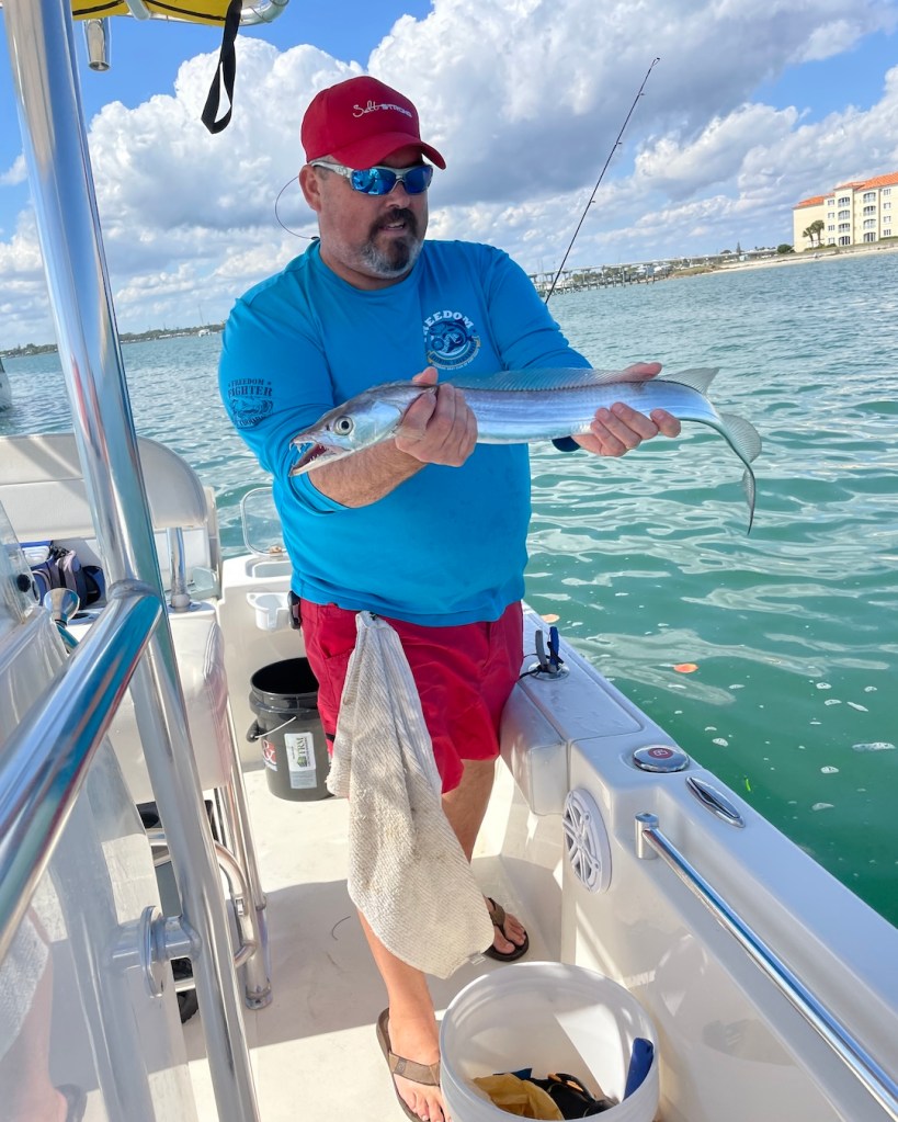 When we got into the marina, the dock was full, so I was asked to hang out until the dock was cleared for us to dock. While we waited, I threw out a banana jig tipped with shrimp. I caught five ladyfish while we waited. I asked Tania if she wanted to fish, but she didn’t like catching ladyfish.