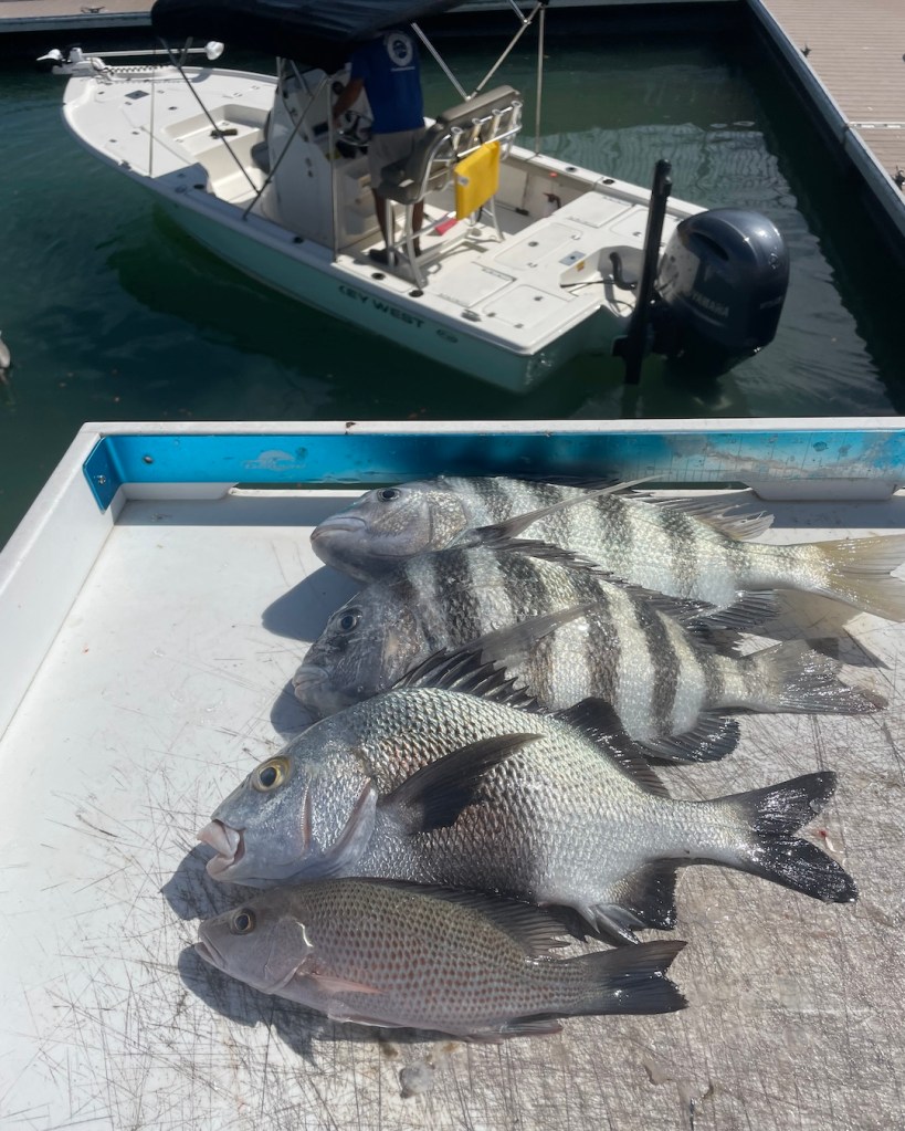 I arrived at the dock at about 6:30 am, loaded the boat, and got it ready. My friend and his son arrived just before 7:00 am, and we headed out. When we got to the inlet, we grabbed some threadfins from Wardaddy Baits and continued out the inlet.