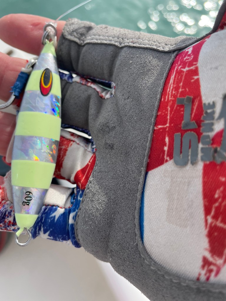 I went to the first spot I wanted to try, just north of the inlet. I was not disappointed as we all started to catch fish within a few minutes. My first fish was a small Jack, but my buddy Lee and his son caught two nice sheepsheads, one being 16in and the other 18in. I was using 75 squidtrex, my buddy was using a 60g Gypsea slow pitch jig from Nomad Design, and my We continued to drift the reef for another 30 minutes, in which time we landed multiple fish, but most were small jacks, except a decent black margate.