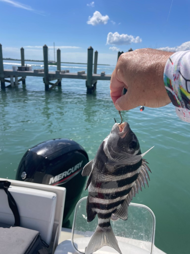 This was a great way to end the day. We finished off our shrimp, catching lots of fish. We caught a small black grouper, a short sheepshead, a mutton snapper, a lane snapper, and a mangrove snapper.