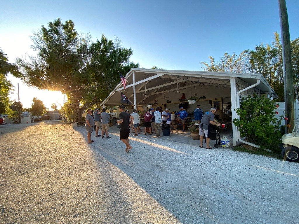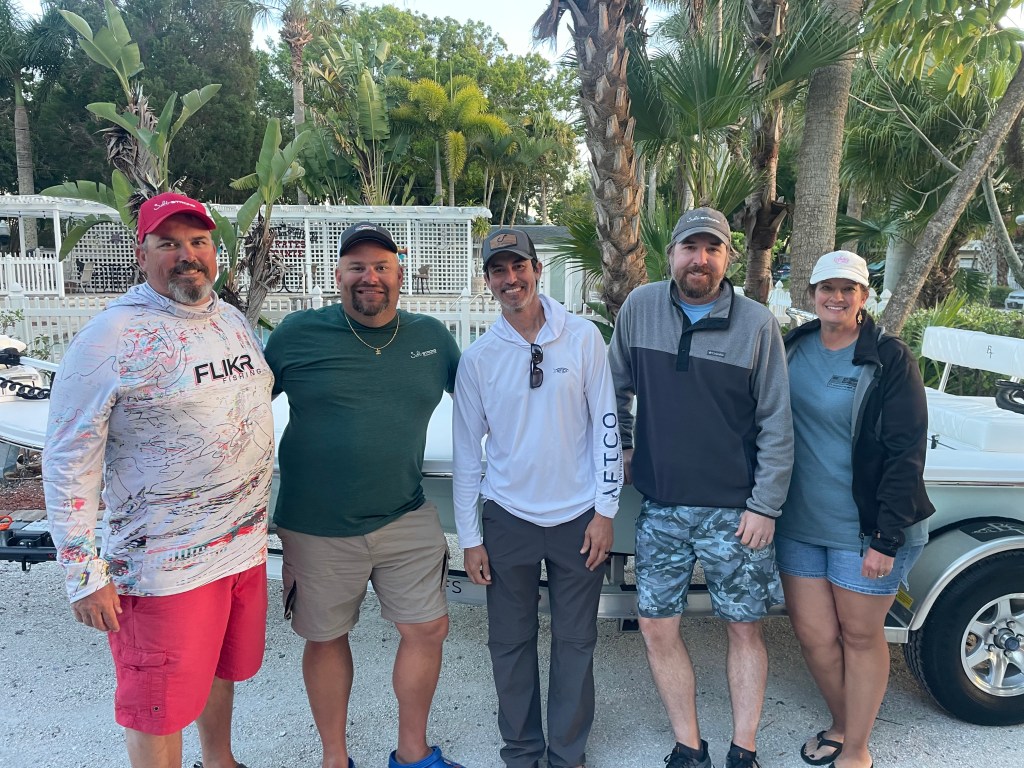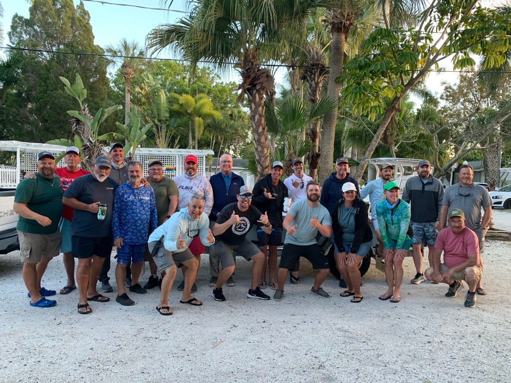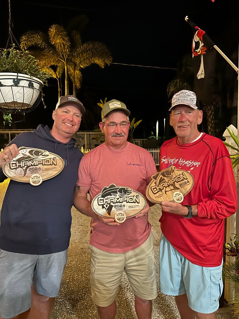 We ended the day with a surf and turf meal. Between all the boats, we only brought back three trout. I had brought a snook fillet, and Salt Strong provided the steaks and potatoes. Darlene made a great stew, which everyone loved. After supper, the winners of the tournament were announced. Terry from the Sports Coast Chapter landed the largest snook, and Glen from the Sarasota Chapter took the largest trout and redfish. However, Rodney Durant from the Alabama Chapter caught a larger redfish Friday morning, so he gave him the plaque.