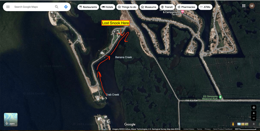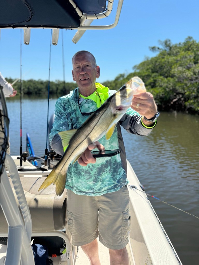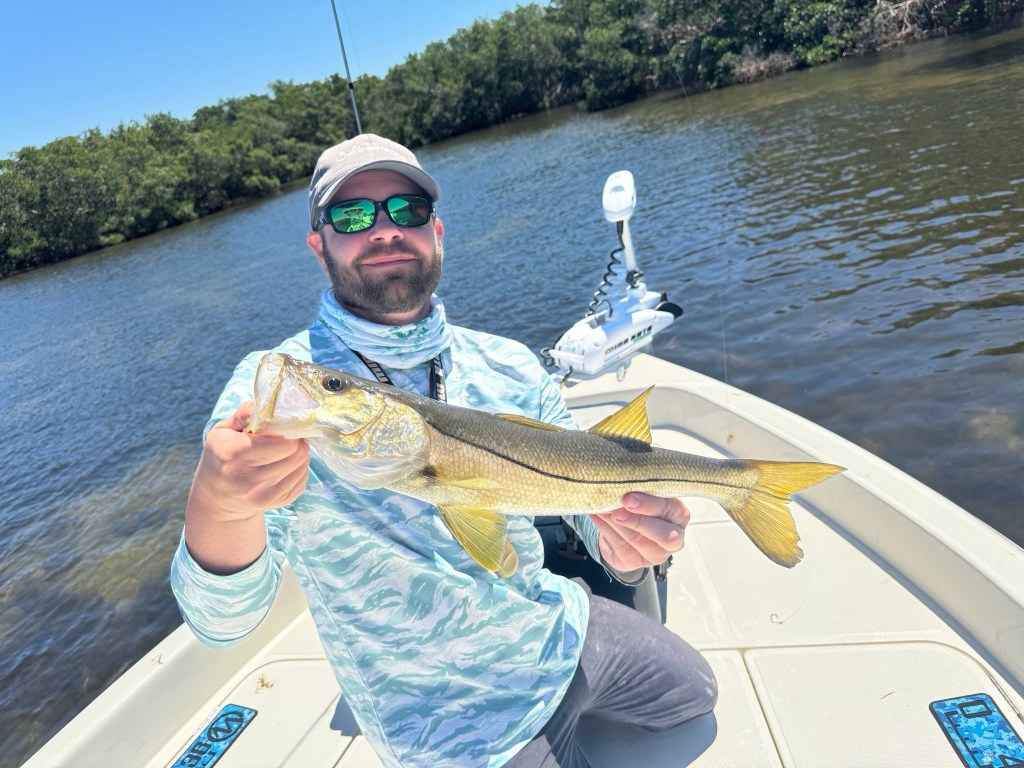 Once we exhausted this area, we ran back to the dock. We were unsure when we had to be back for the weigh-in. Since we weren’t sure, we headed back at about 4:00 p.m. As we came into the canal, we decided to try our luck. Not far into the canal, I had another snook on; this time, my FG knot failed. I was frustrated as, this time, it was my fault for the loss. Although I did tie a good FG knot, casting it in the mangroves all day, something compromised my knot and made it weak. Next time, I will check my knots more frequently to avoid losing a fish like that again.