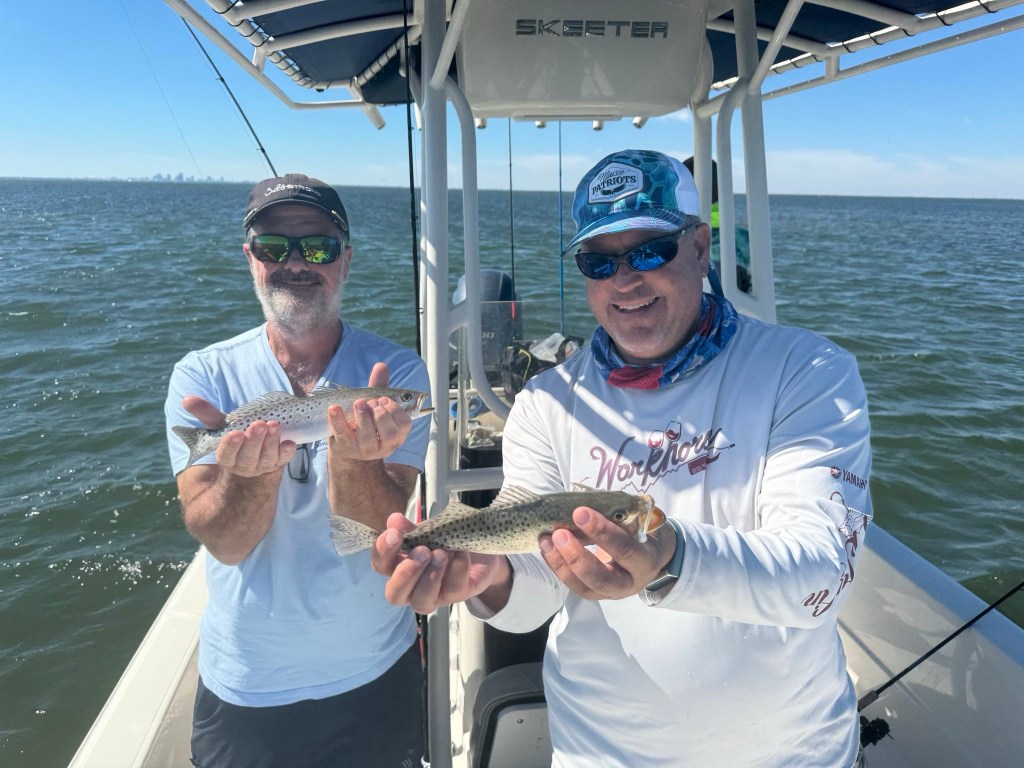 It was after 11:00 am, so we made the run back to the dock to pick up our packed lunches since we departed before the lunches were finished. We picked up our lunches, headed to Cockroach Bay, and focused on catching more fish. This plan panned out well, as we all caught lots of trout while drifting the flats. We had fun pulling in the trout but pivoted to seeking some snook and redfish.