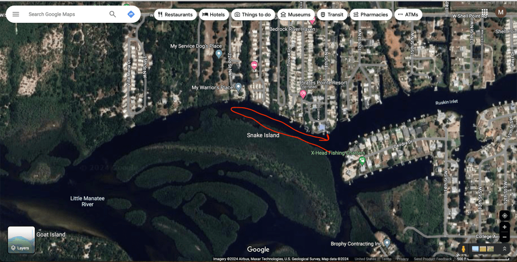 When we got closer, we realized it was not dolphins in the creek but a bunch of manatee mating. I felt like we were in a nature documentary when we saw them all splashing around. There was one dock at the end of the creek, where I had my first bite of the day. I had a gold digger colored power prawn jr. with a 1/4oz football jig, and a snook thumped it pretty good. After a few seconds of pulling drag, my leader broke below the knot. I was so disappointed I had just lost a massive snook, but it was equipment failure and not my fault.