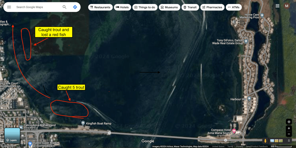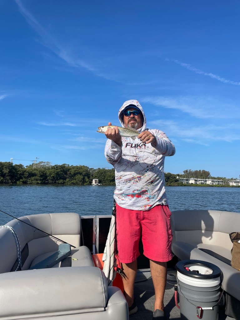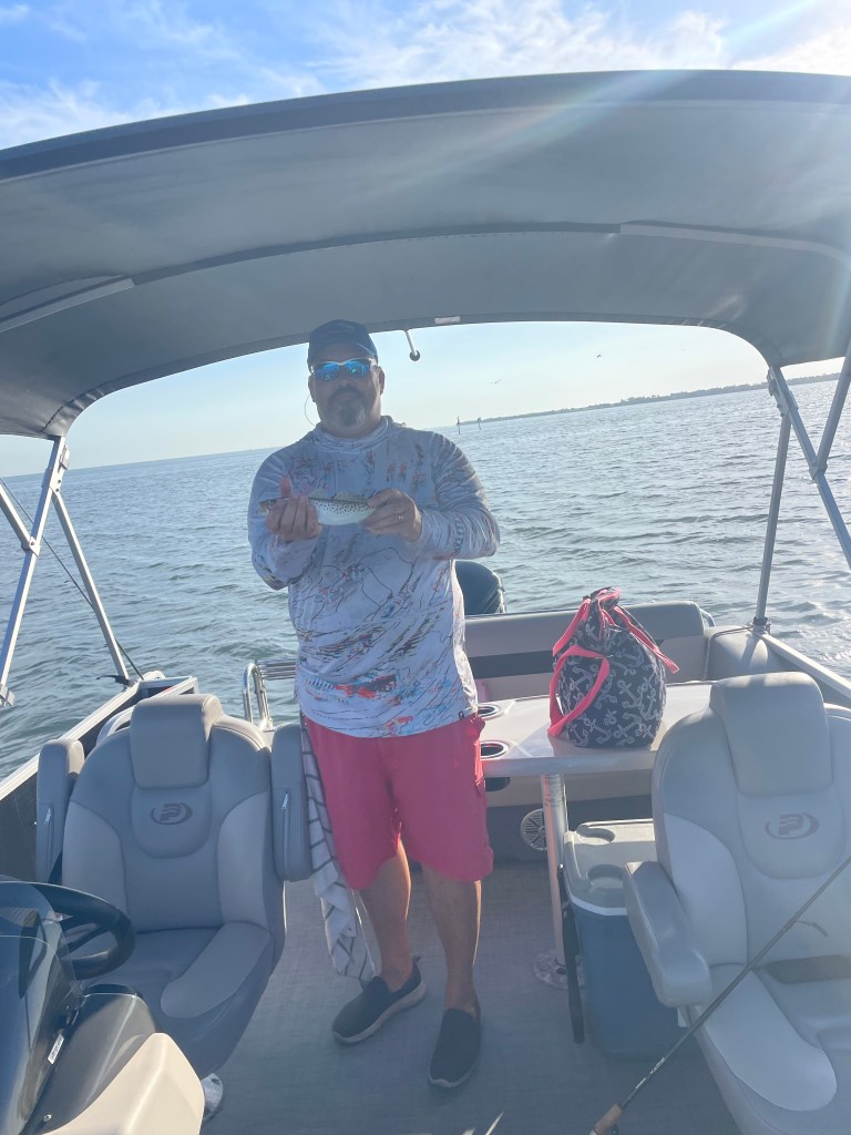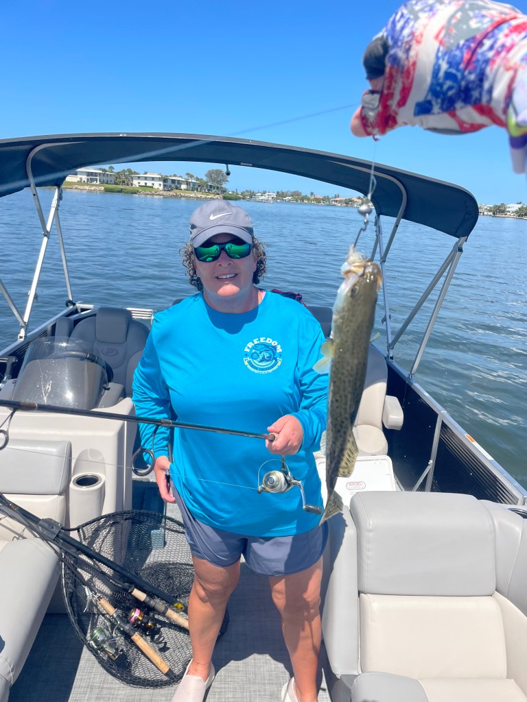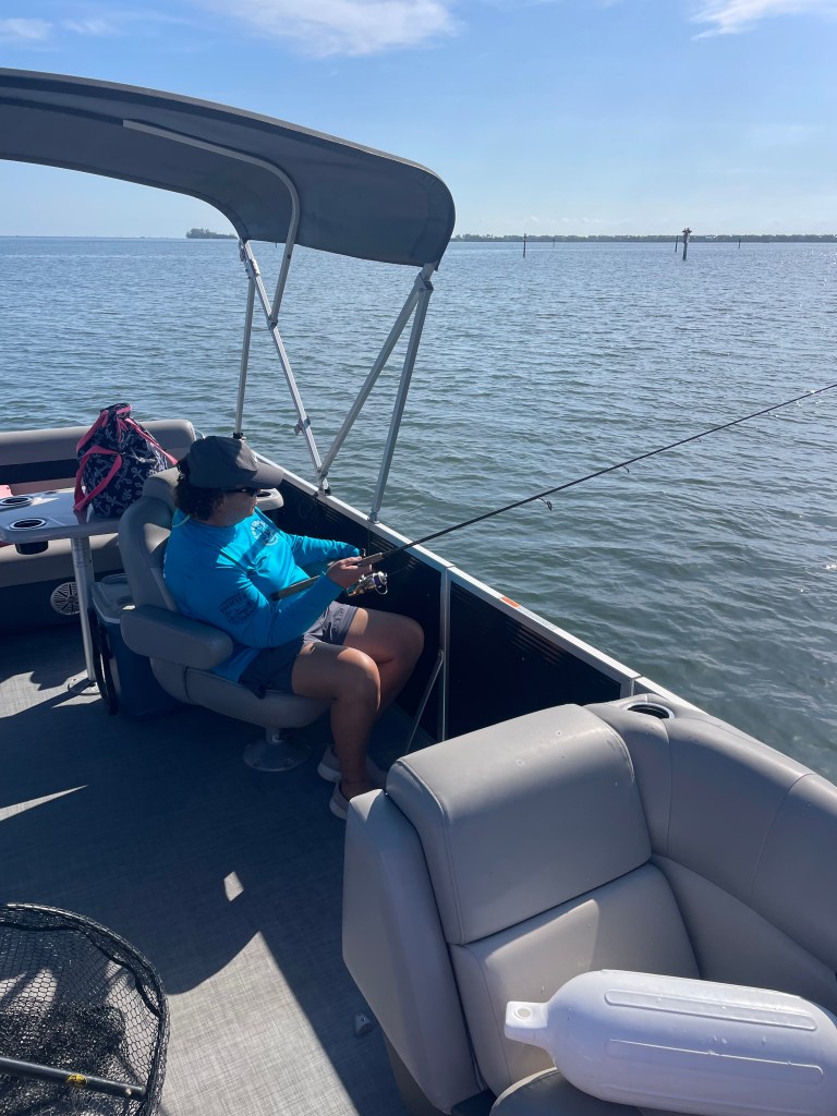 Tania and I went on our anniversary fishing trip on Friday morning. We reserved a boat at the Bradenton Freedom Boat Club. I was excited to go trout fishing, and Tania was happy to spend time with me. When we arrived at the club, I found out we had arrived at the wrong one; there are so many Freedom Boat Clubs in Florida. Fortunately, the club had a pontoon available, and they said we could fish on it, so I said we would take it so we didn’t have to spend the next 20 minutes driving to the other location.