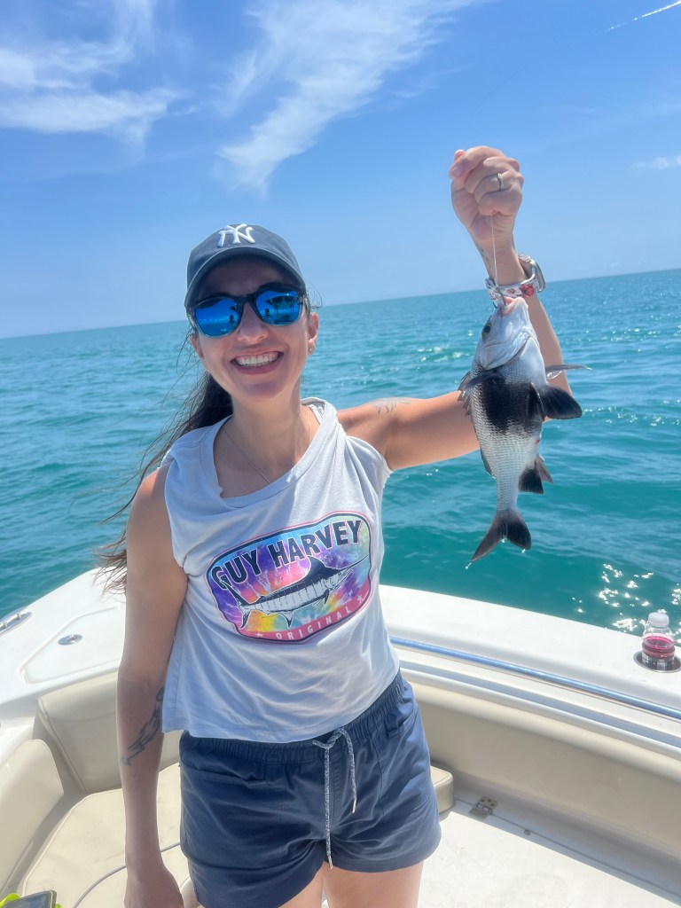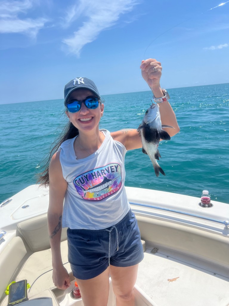 At about 1:00 pm, I decided to try our luck at the buoy for some lane snapper, but even they weren’t biting. After fifteen minutes at the buoy and only catching a single black margate, I was ready to throw in the towel and call it a day. It was pretty hot, the wind picked up, and the bite was slow, but Tania convinced me to do a few more drifts near the buoy again.