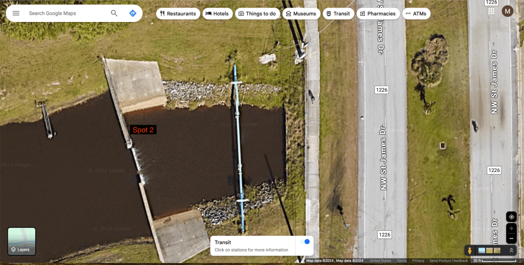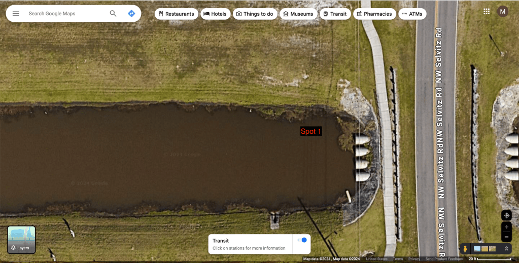 Around 11:00 a.m., I packed my bike with some tackle, pliers, a rag, and my rod and reel and pedaled out. My first stop was a canal on Selvitz Rd, about two miles from home. I spent about 15 minutes casting, and within a few casts, I hooked a bass that got away but landed a feisty Mayan cichlid. With just those two bites, I decided to hit one of our favorite spillways before returning to work.